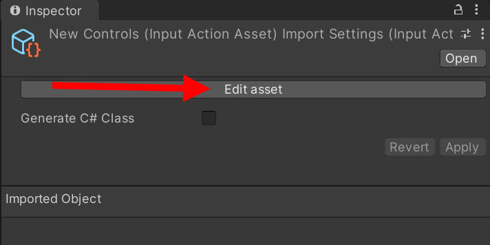 2)input action asset의 편집으로 이동합니다(edit asset)