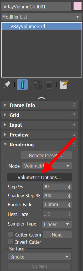 9)VRayVolumeGrid 오브젝트의 rendering에서 voluetric options로 이동합니다.