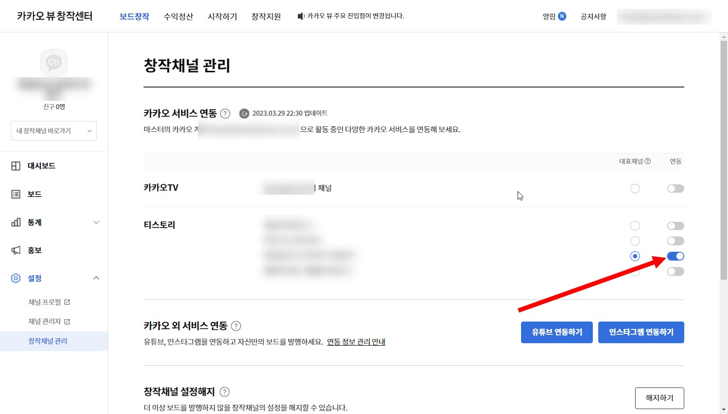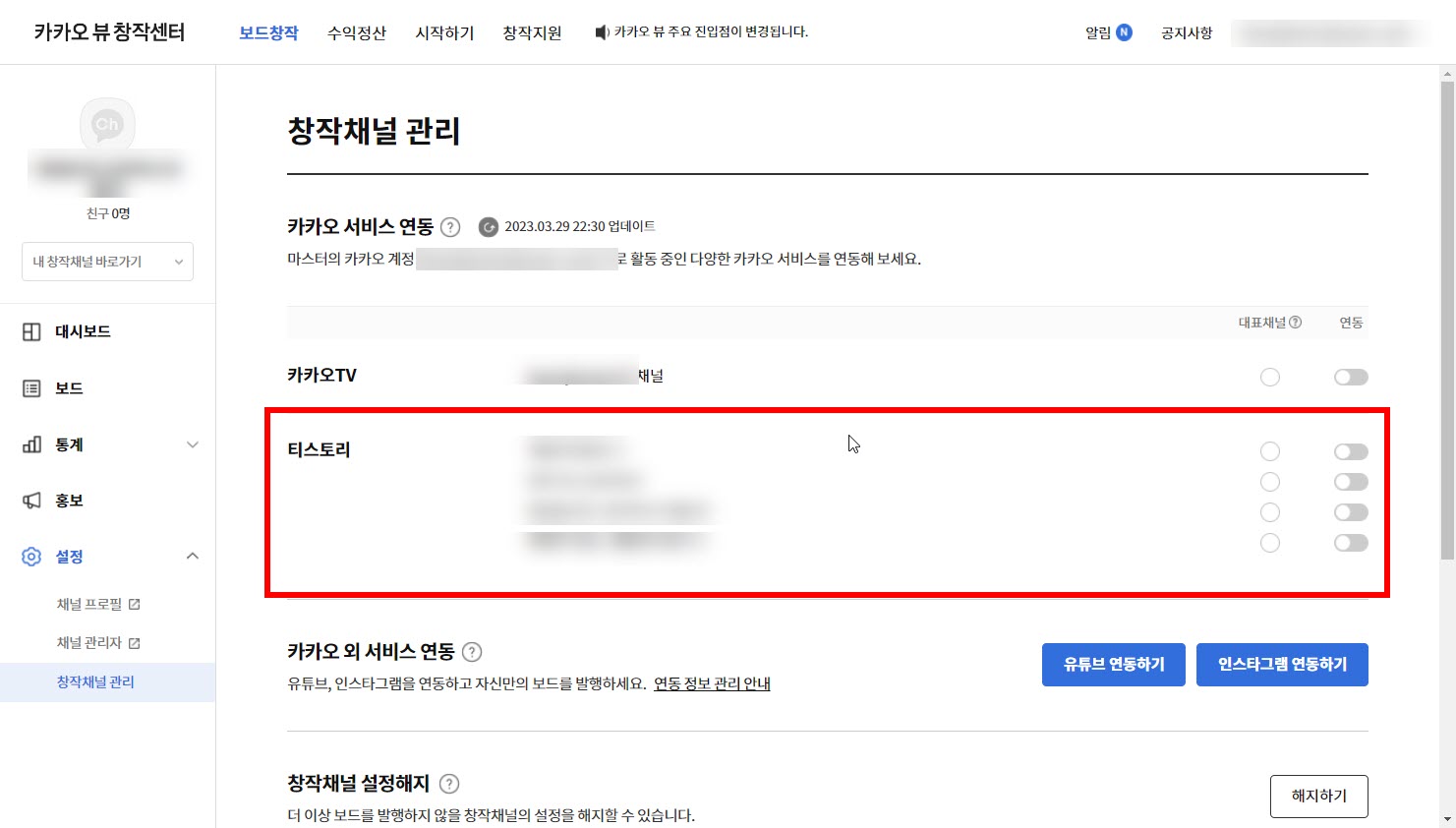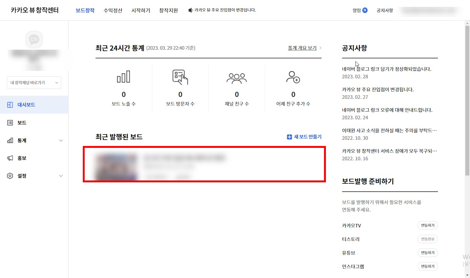 카카오뷰 채널 개설하고 티스토리 블로그 연동하기, 콘텐츠 담기, 보드 발행하기
