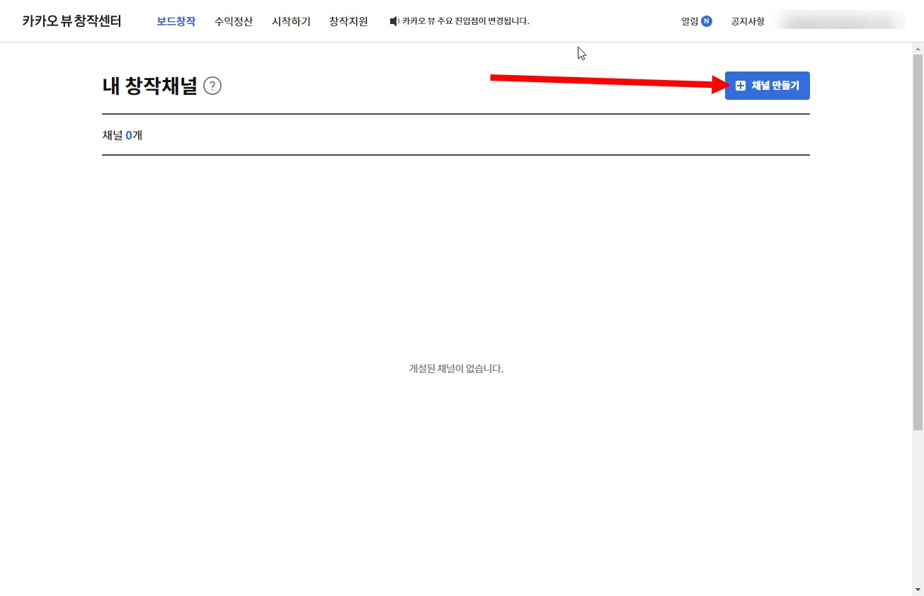 3)내 창작채널에서 채널 만들기를 선택합니다.