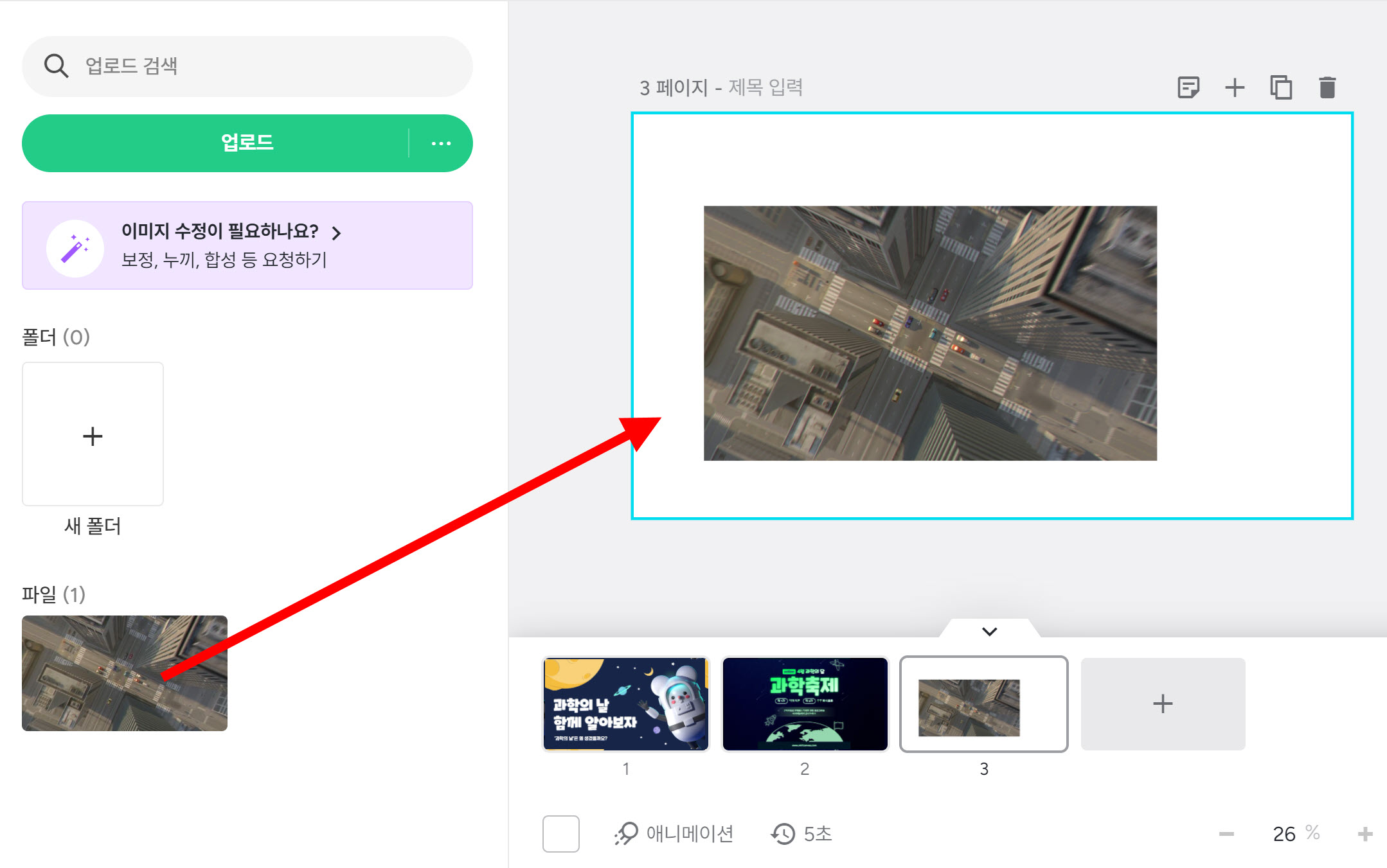 13)페이지에 클릭, 드래그해서 이미지를 추가합니다.