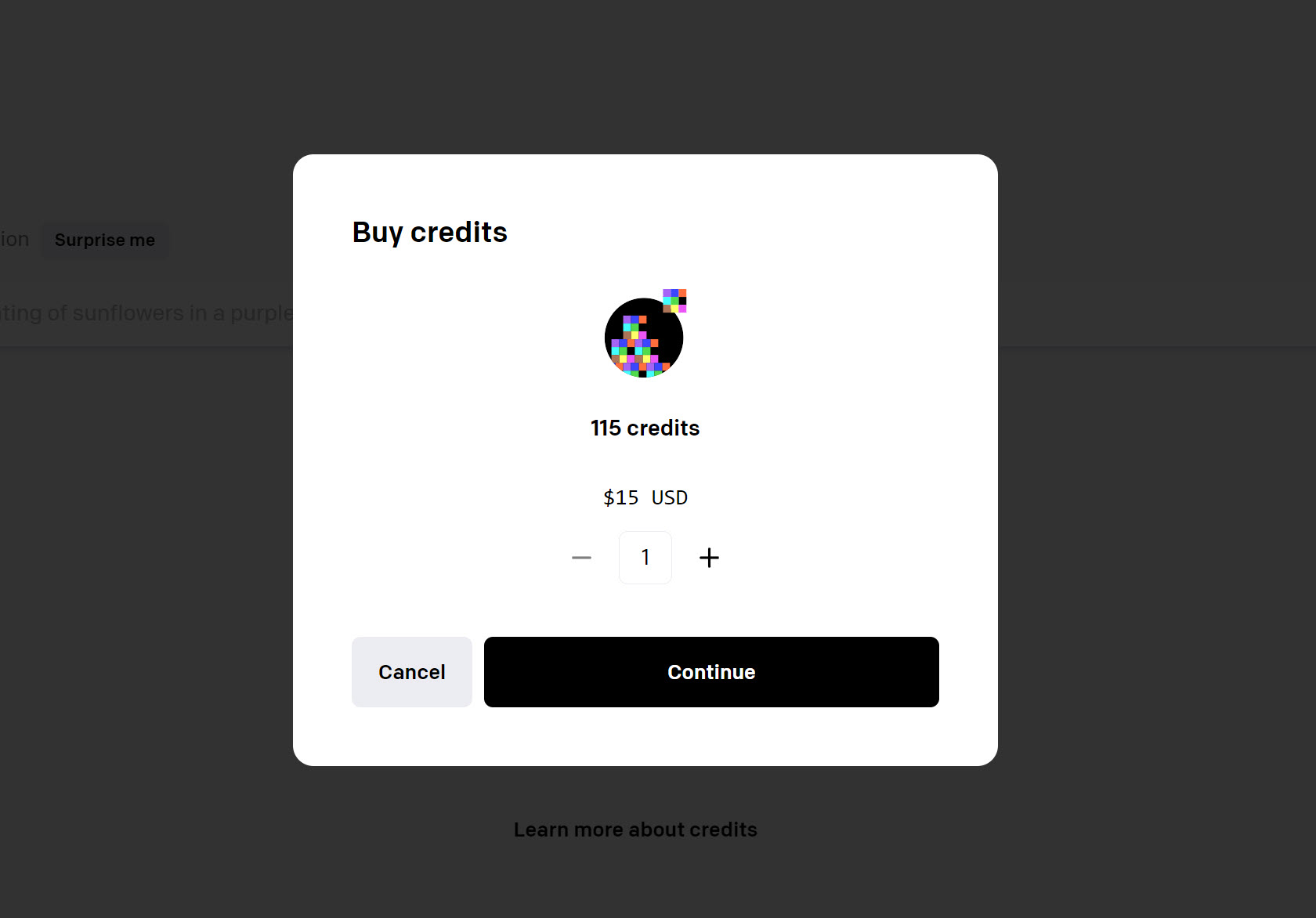 12)$15로 115개의 크레딧을 구매할수있습니다. continue를 클릭하고 카드 정보를 입력하고 결제를 진행합니다.