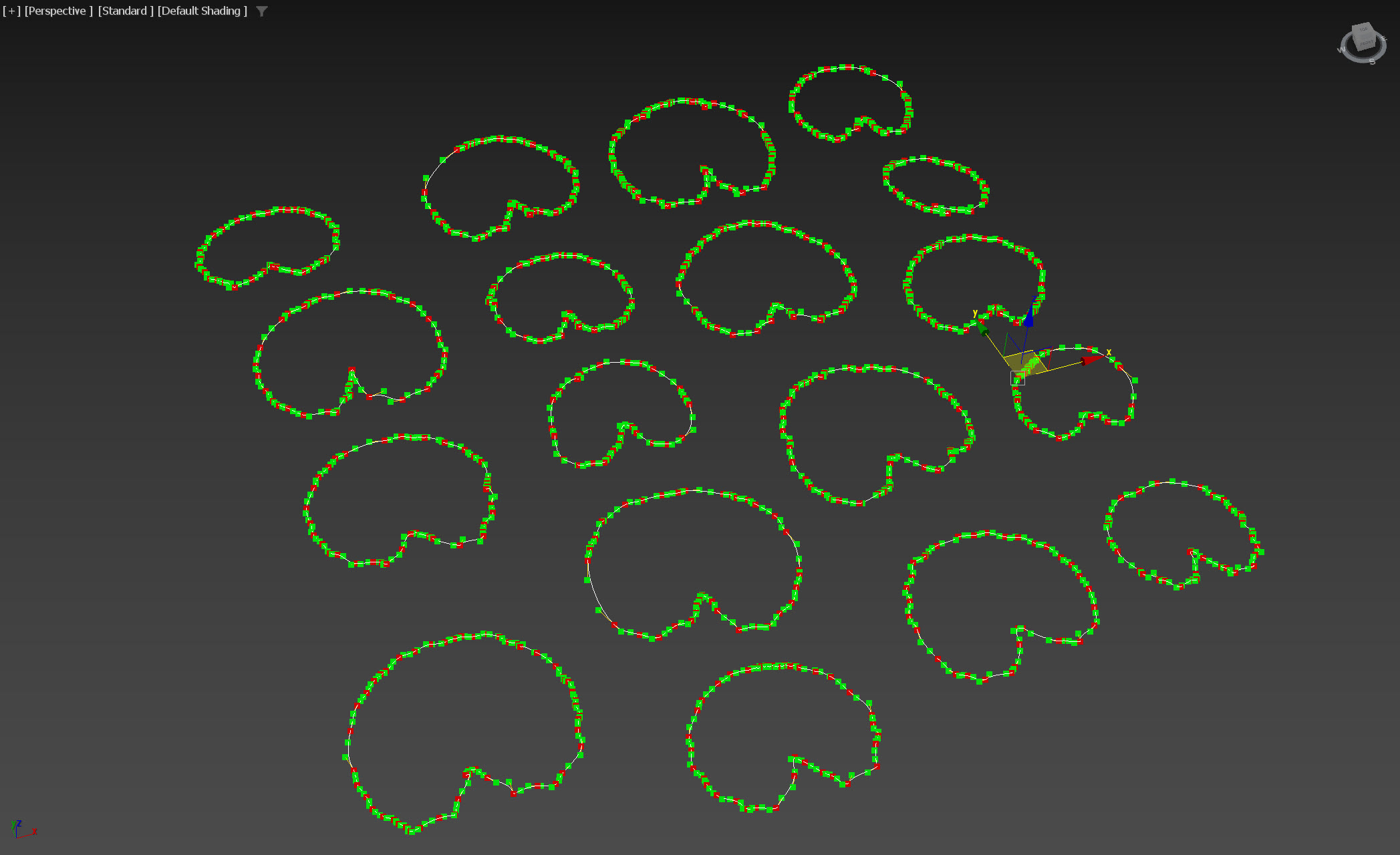 11)포토샵에서 내보내기한 path를 스플라인 오브젝트로 가져오기한것을 확인할수있습니다.
