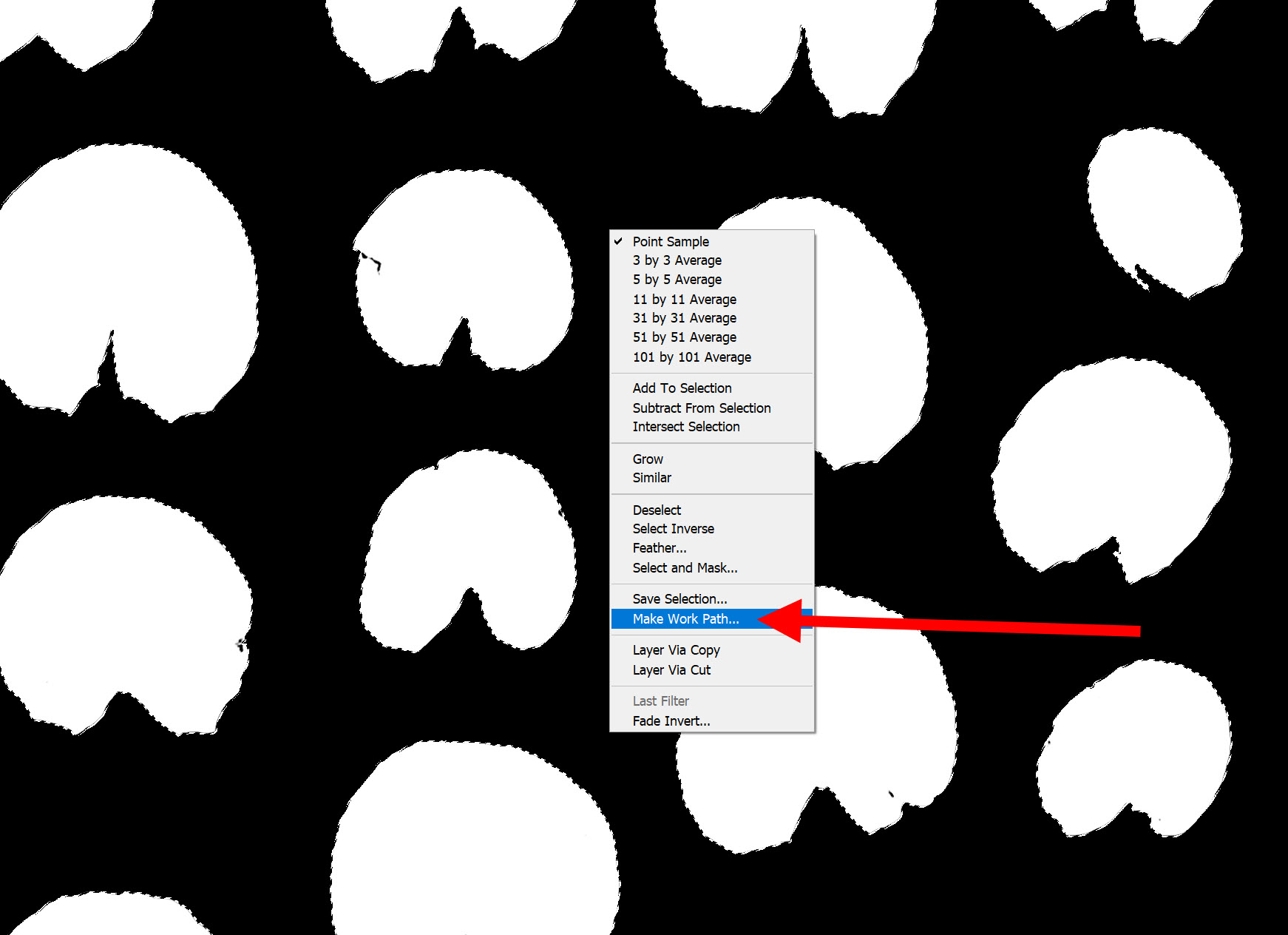 3)마우스 우클릭하고 make work path를 선택합니다.