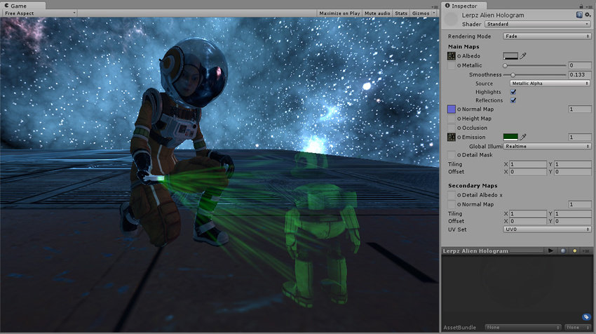 헬멧 오브젝트의 사실적인 투명 재질을 표현하기위해 transparent mode를 사용한것을 확인할수있습니다. 투명 재질에서 씬의 스카이박스(skybox)을 반사하는것을 확인할수있습니다.