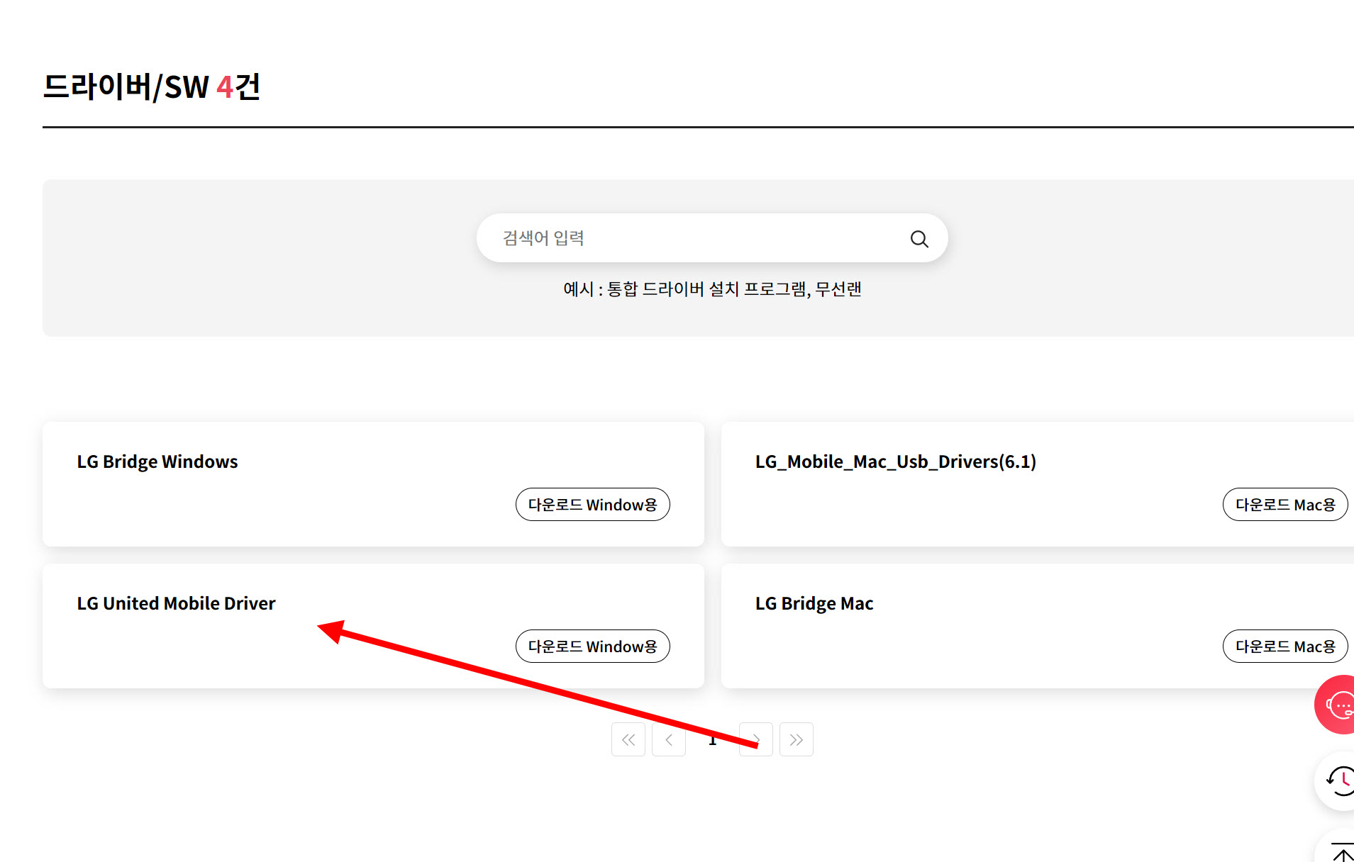 3)LG United Mobile Driver를 선택하고 다운로드합니다.