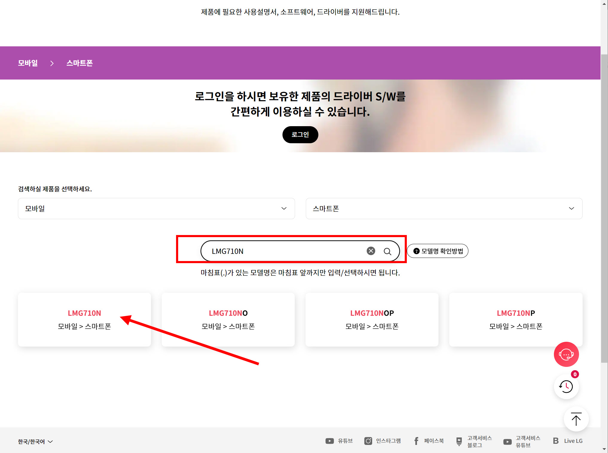 2)스마트폰의 모델명을 검색합니다.