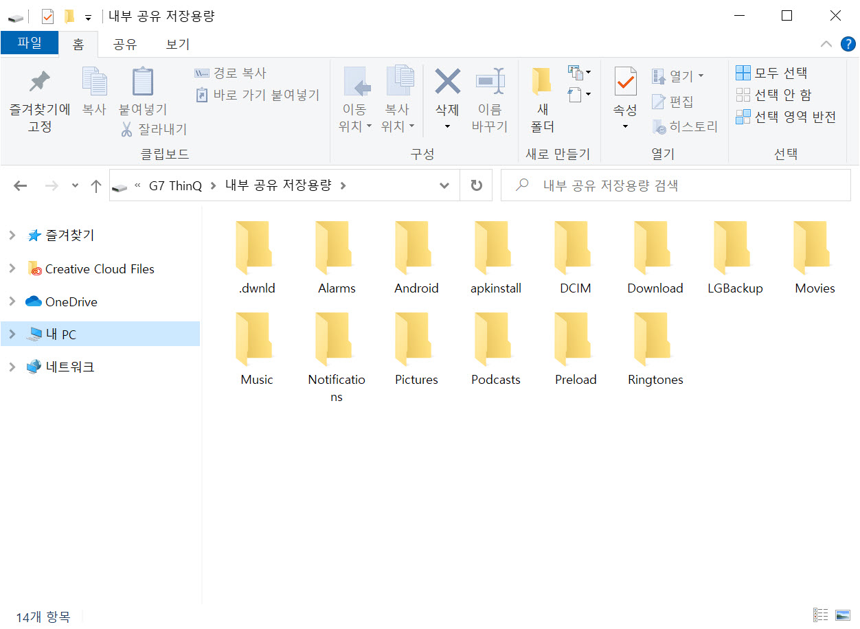 (내PC 장치 및 드라이브에서 LG 스마트폰 장치를 표시하지않는경우)