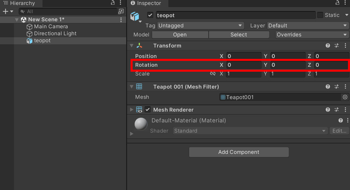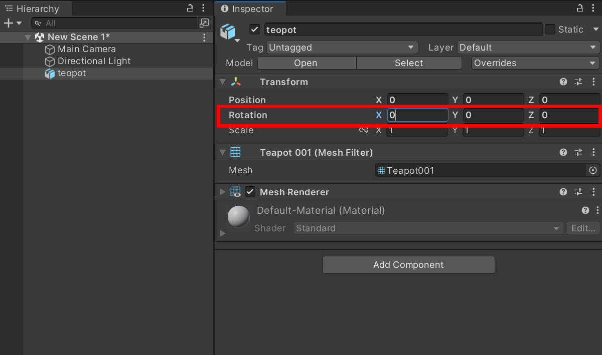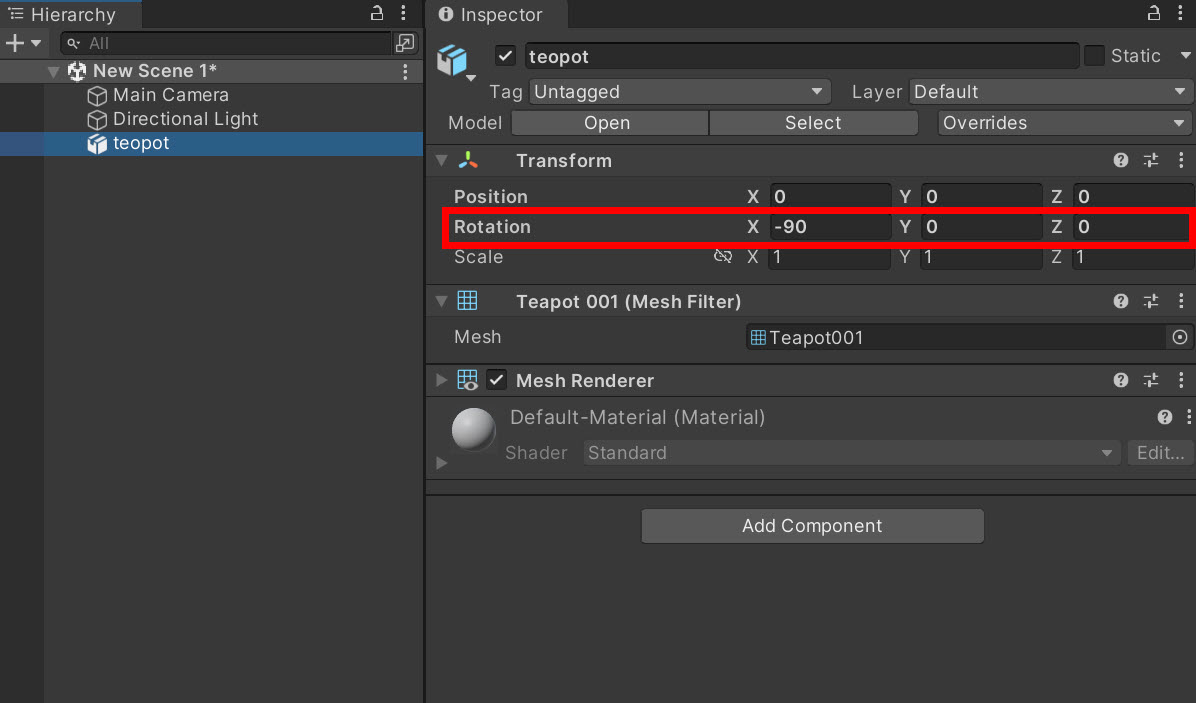 유니티에 가져오기한(import) 3D오브젝트의 회전(rotation) 재설정