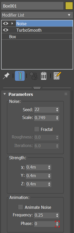 3)noise 수정자를 추가하고 noise의 scale, strength 수치를 입력합니다. seed를 설정하여 다양하게 변형합니다.