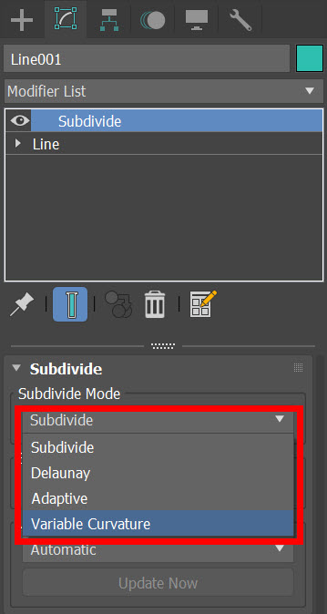 5)subdivide mode에서 세분화(subdivision)에 사용할 알고리즘을 선택합니다.