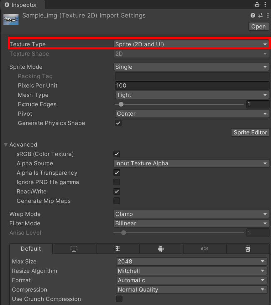 3)파티클시스템에 사용할 텍스처 유형을 sprite로 변경하고 적용합니다.