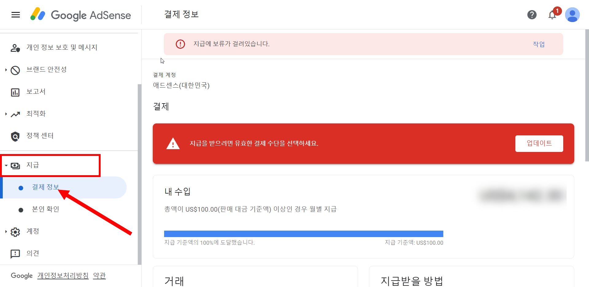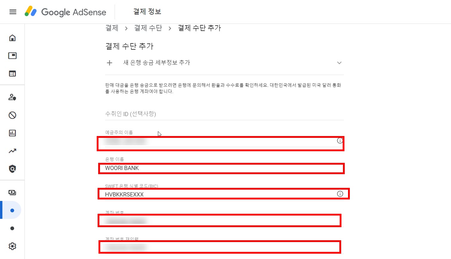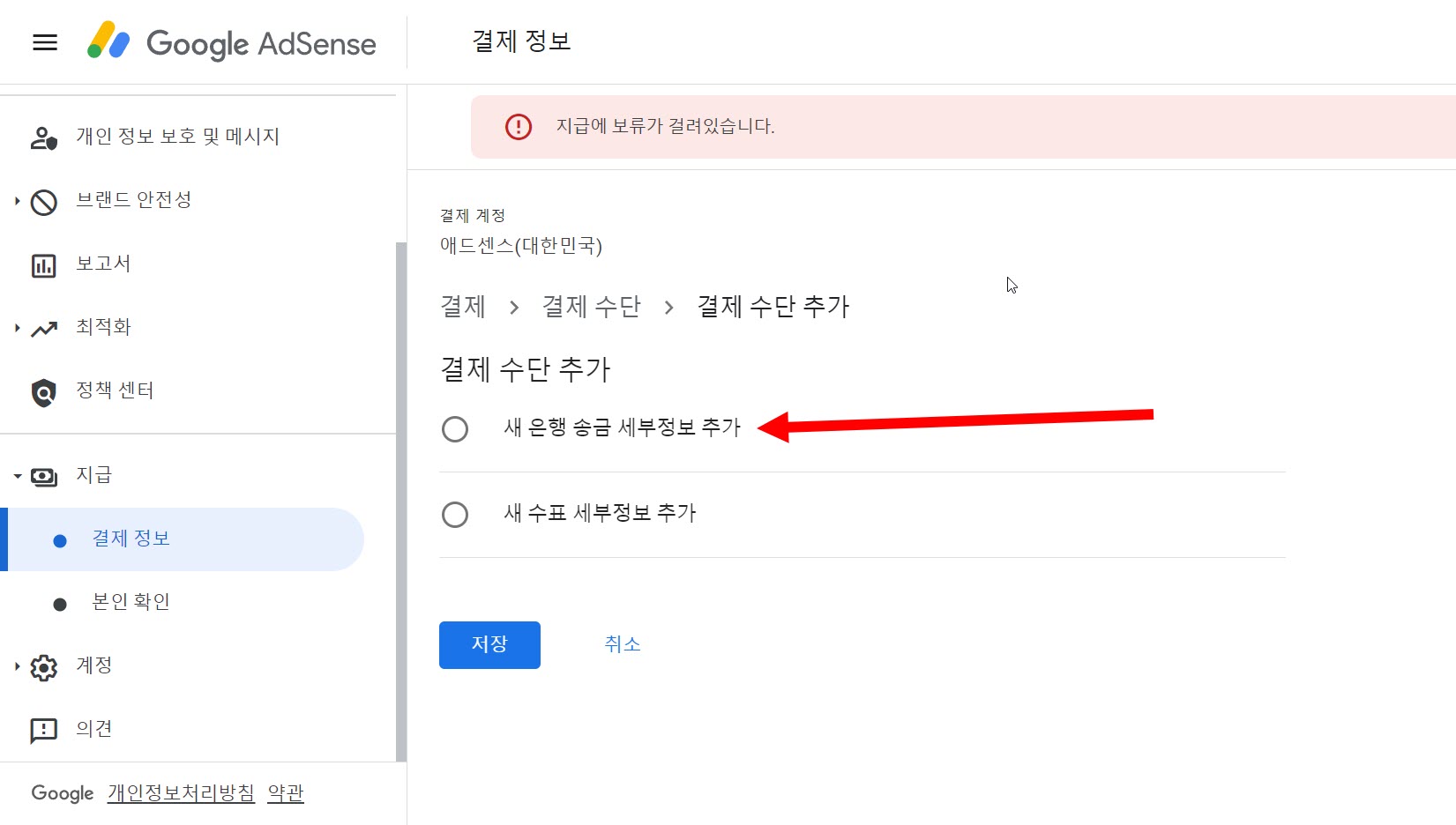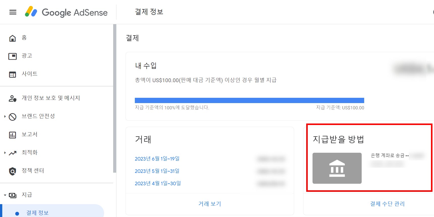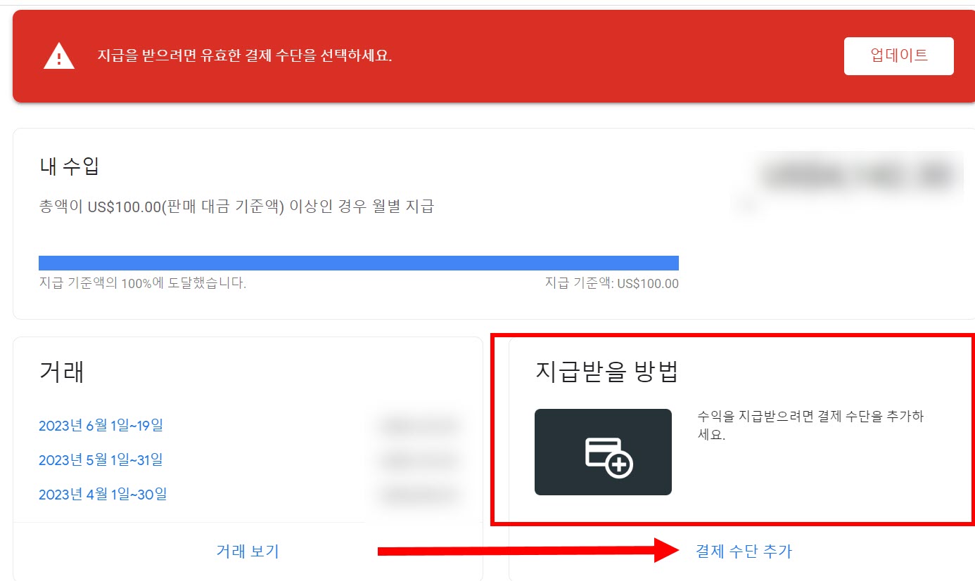 구글 애드센스(google adsense)에서 내 수입 지급 받기(결제 수단 추가)