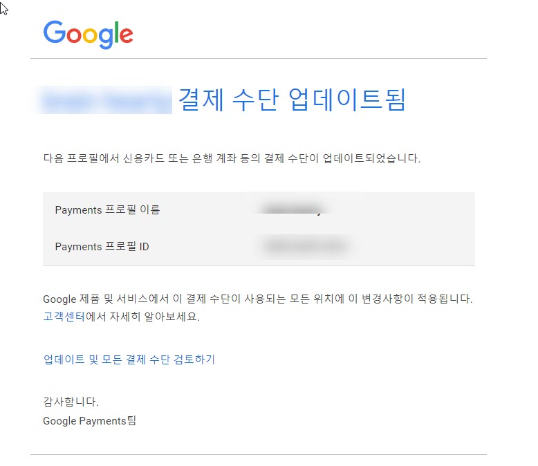 9)메일에서 결제 수단 업데이트 이메일을 확인할수있습니다.