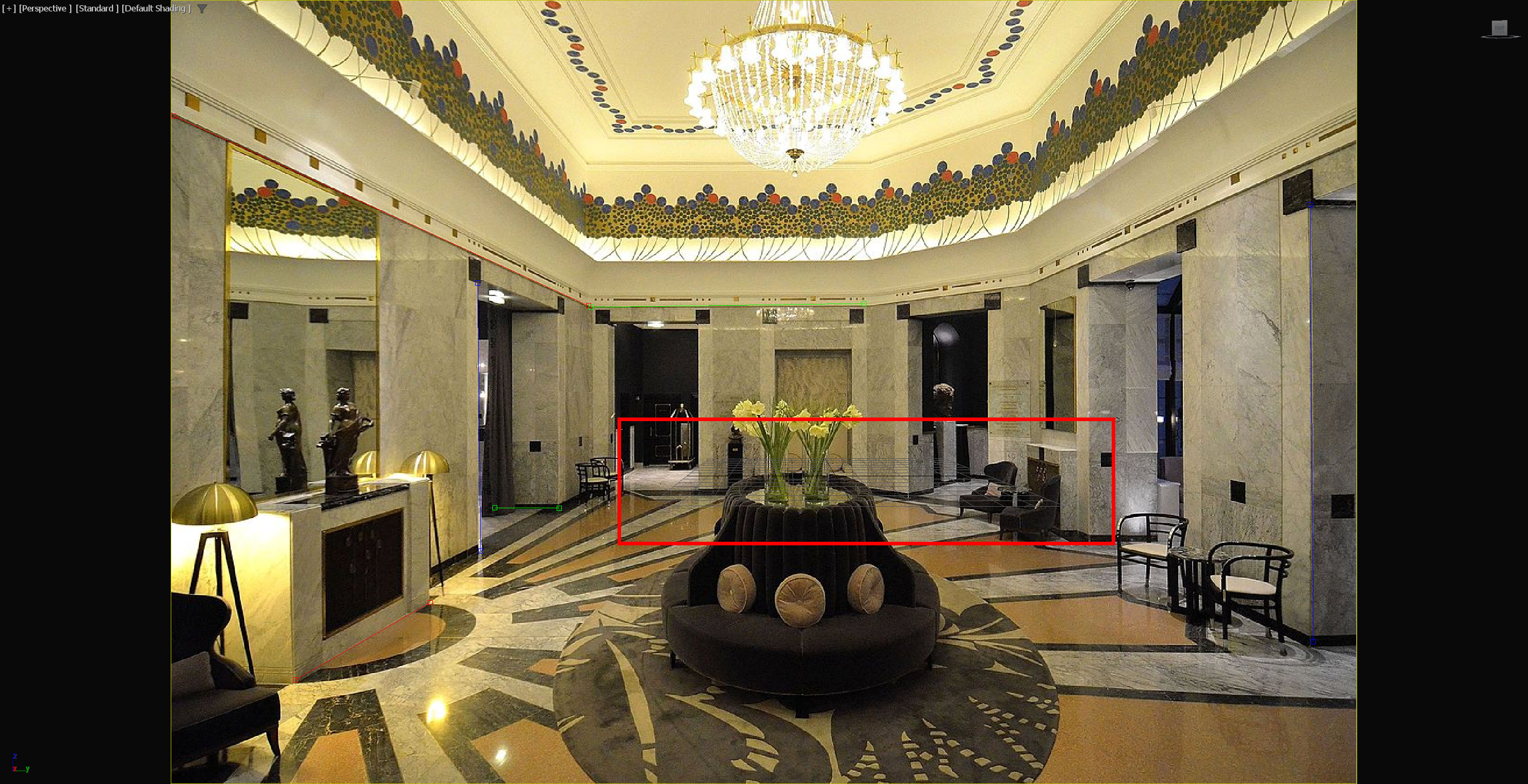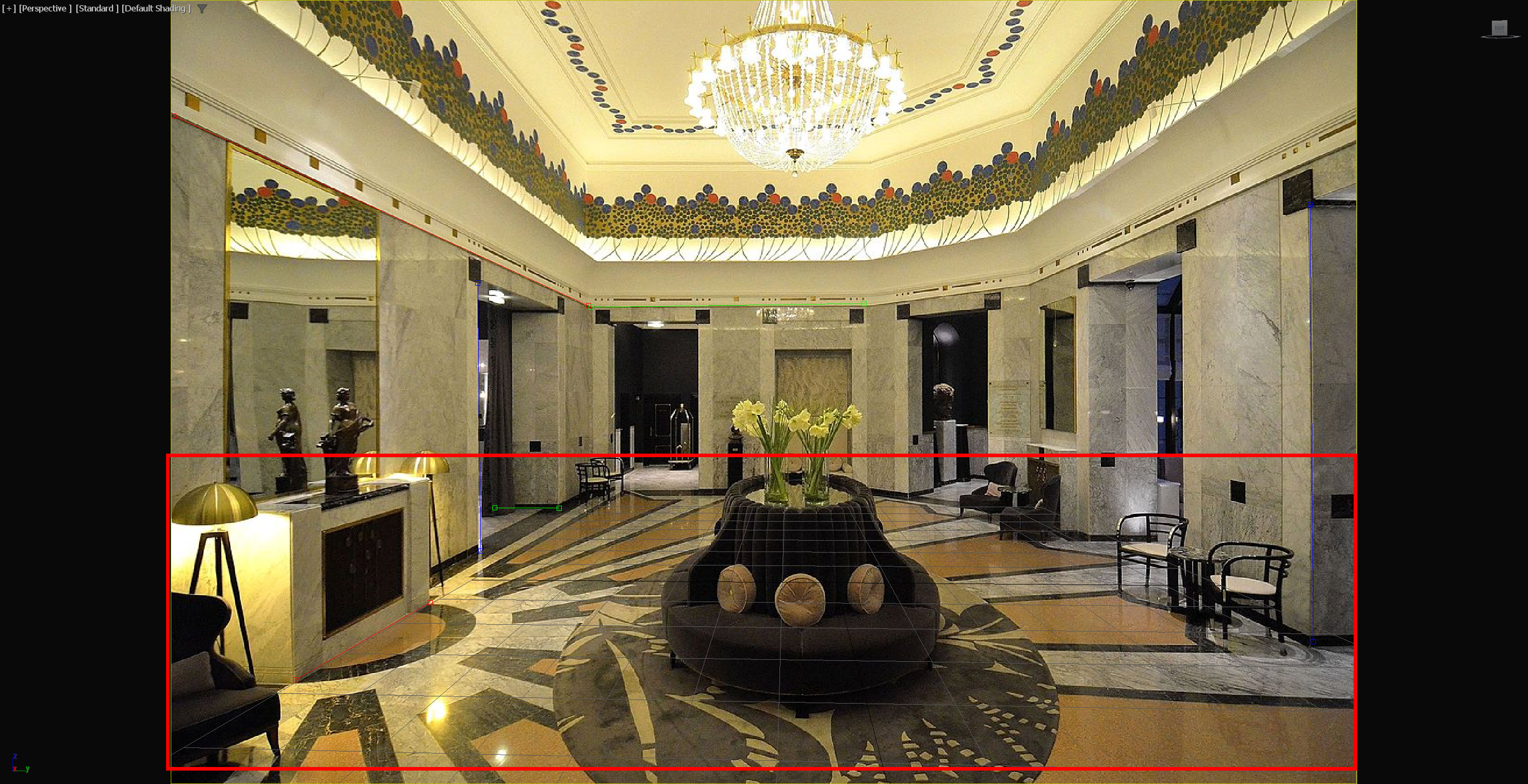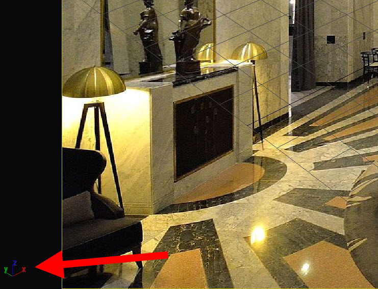 12)뷰포트에서 그리드(grid)를 확인합니다. 사진(이미지)과 뷰포트의 카메라 원근법이 일치하는것을 확인할수있습니다.