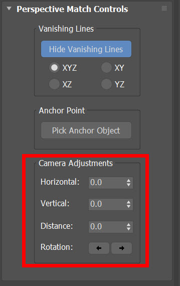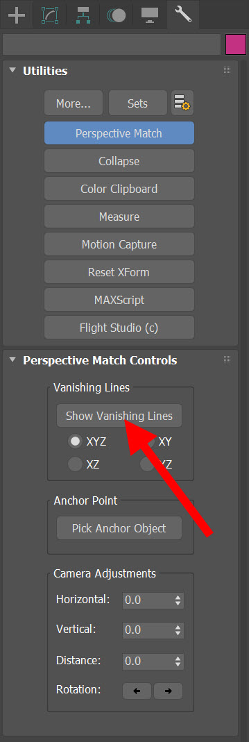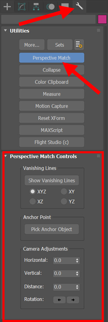 8)utilities의 perspective match로 이동하고 perspective match controls를 확인합니다.