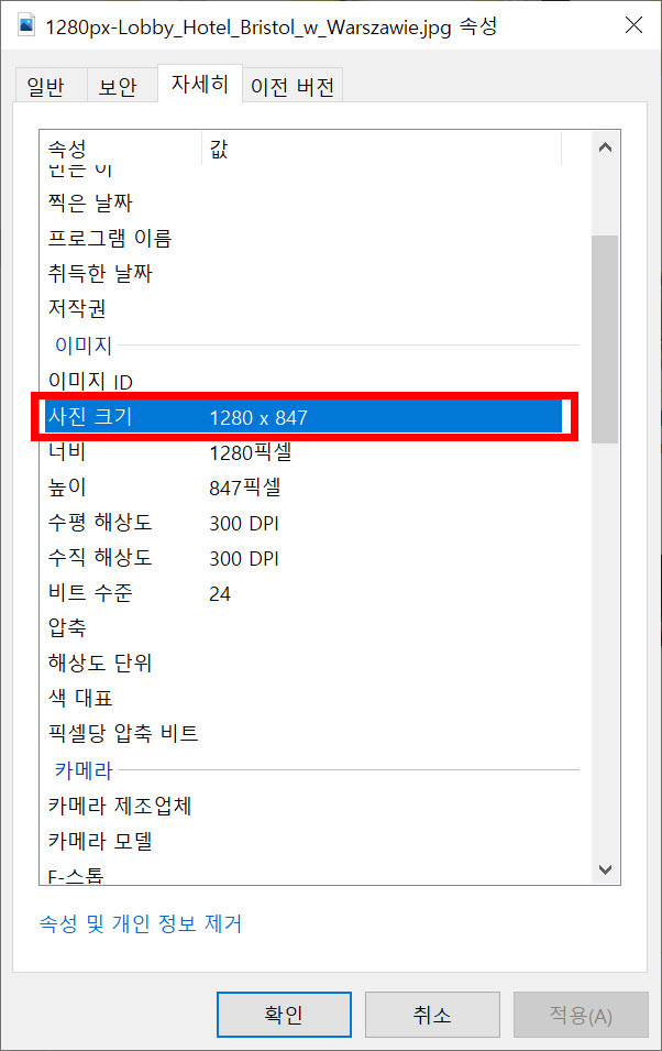 2)파일 속성에서 이미지의 해상도를 확인합니다.