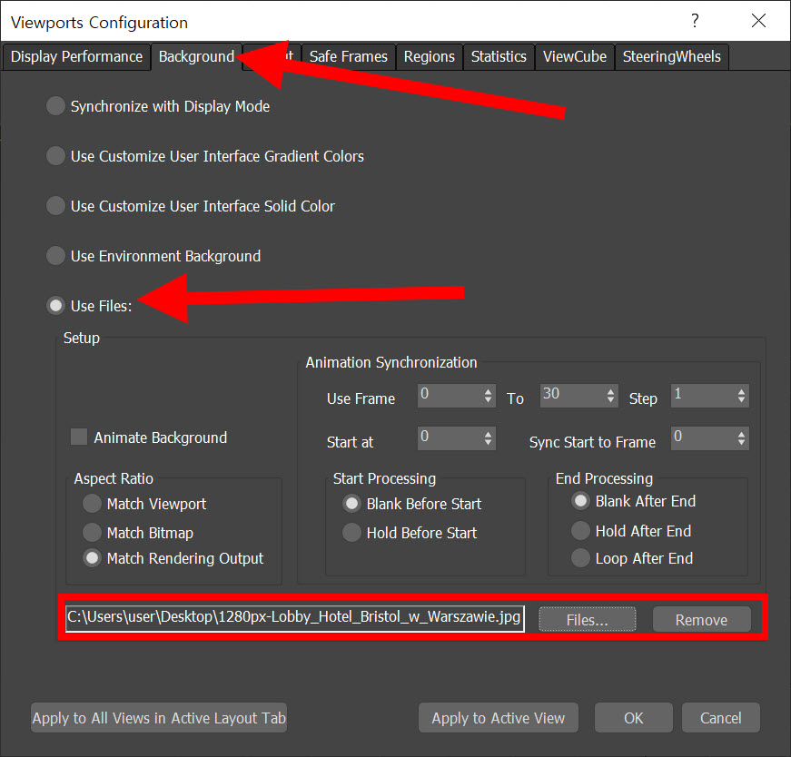 5)background 탭에서 use files에 체크하고 이미지를 설정합니다.