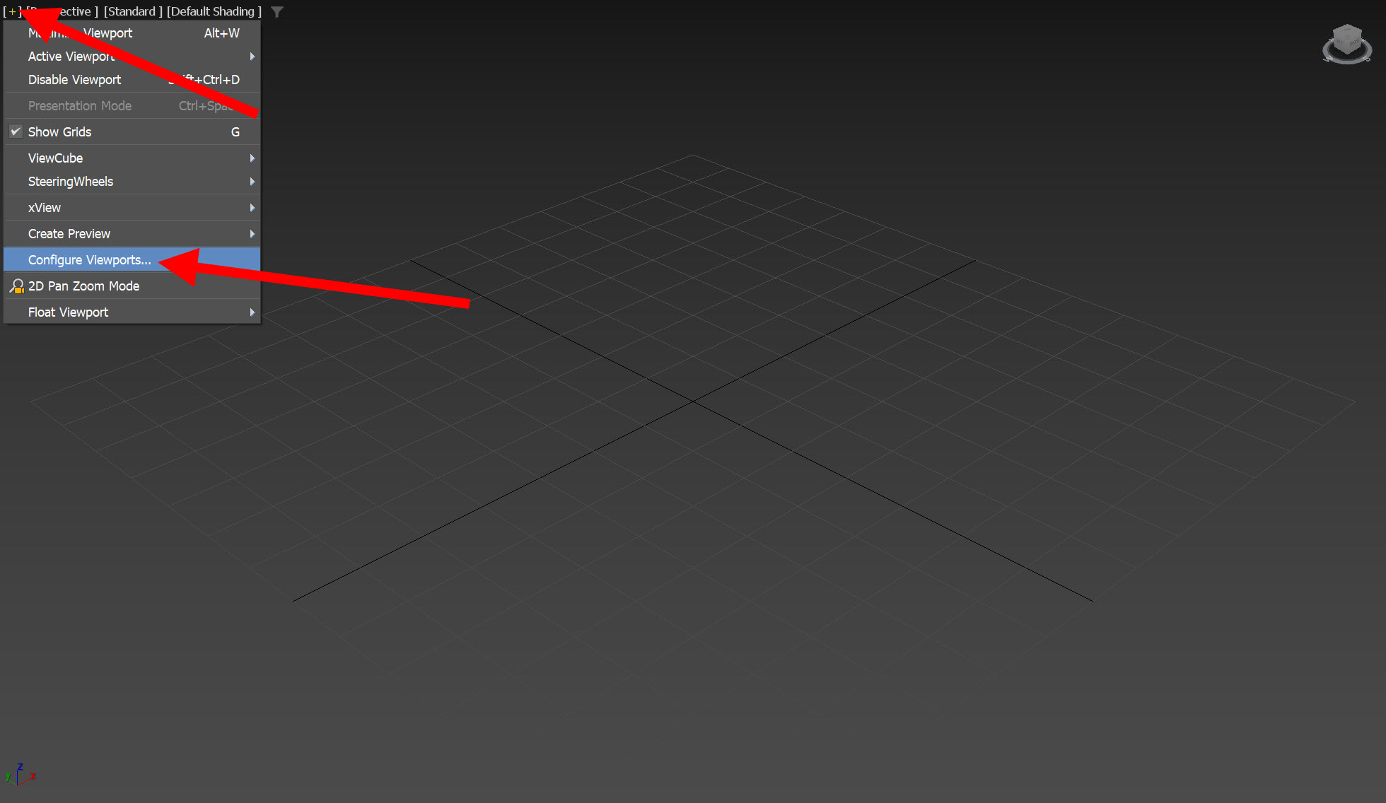 4)뷰포트를 선택하고 좌측 상단에서 configure viewports로 이동합니다.
