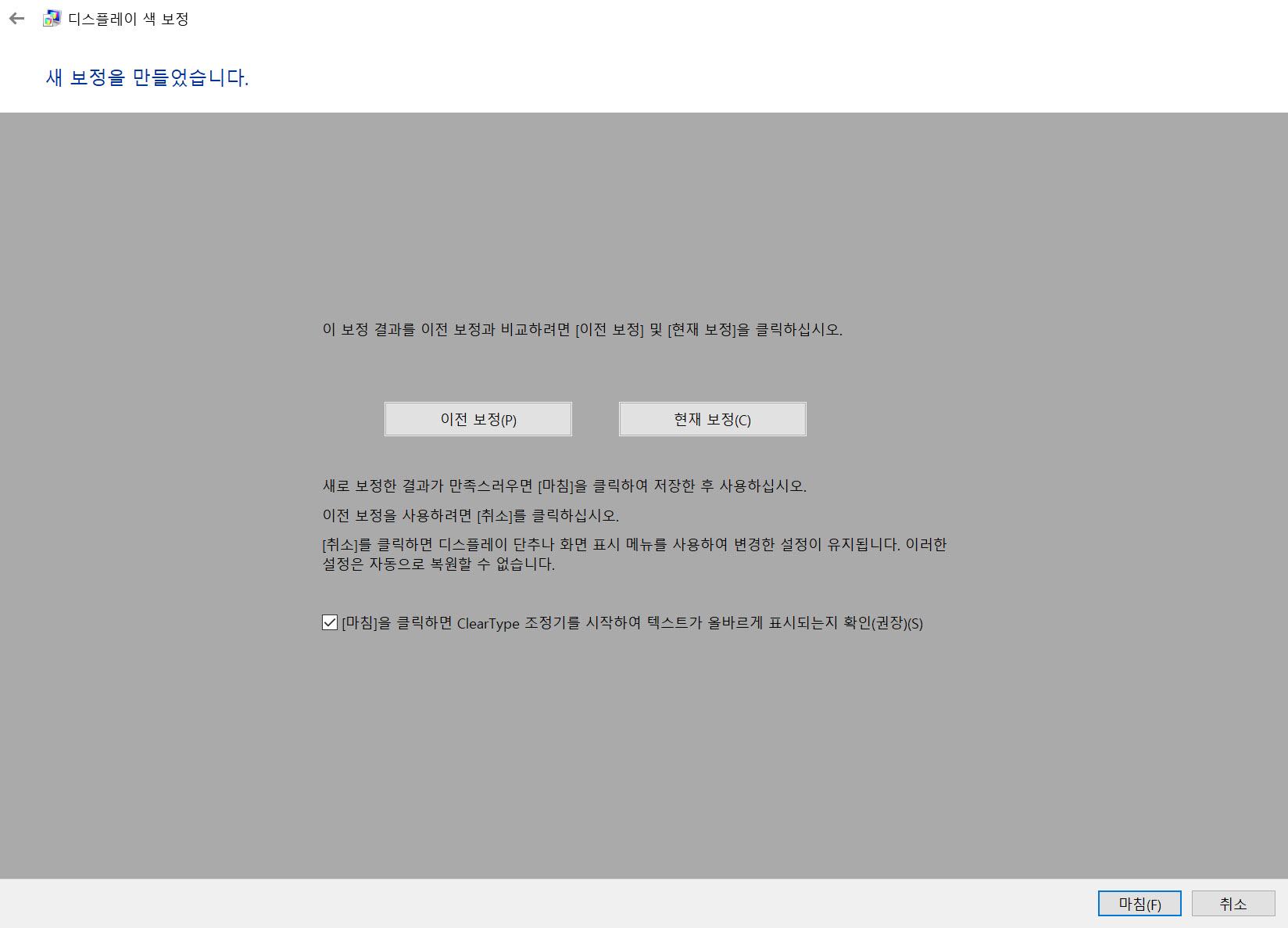 윈도우10에서 모니터의 디스플레이 색 보정하기