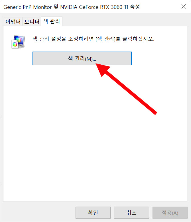 4)어댑더 속성에서 색 관리 탭으로 이동합니다.