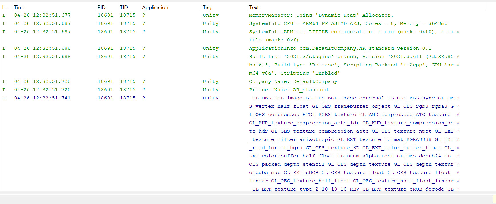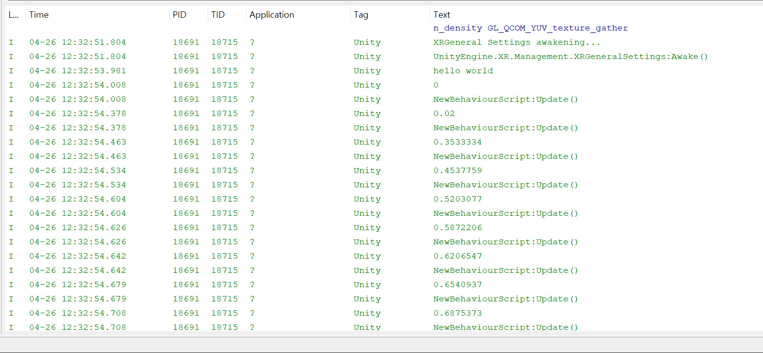 6)게임을 모바일 장치로 빌드하고 실행하면 로그를 출력하는것을 확인할수있습니다.