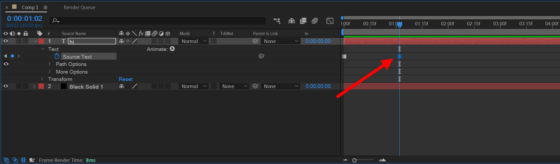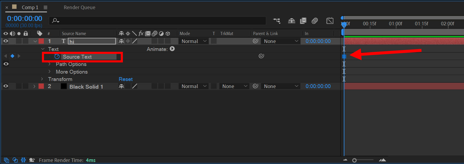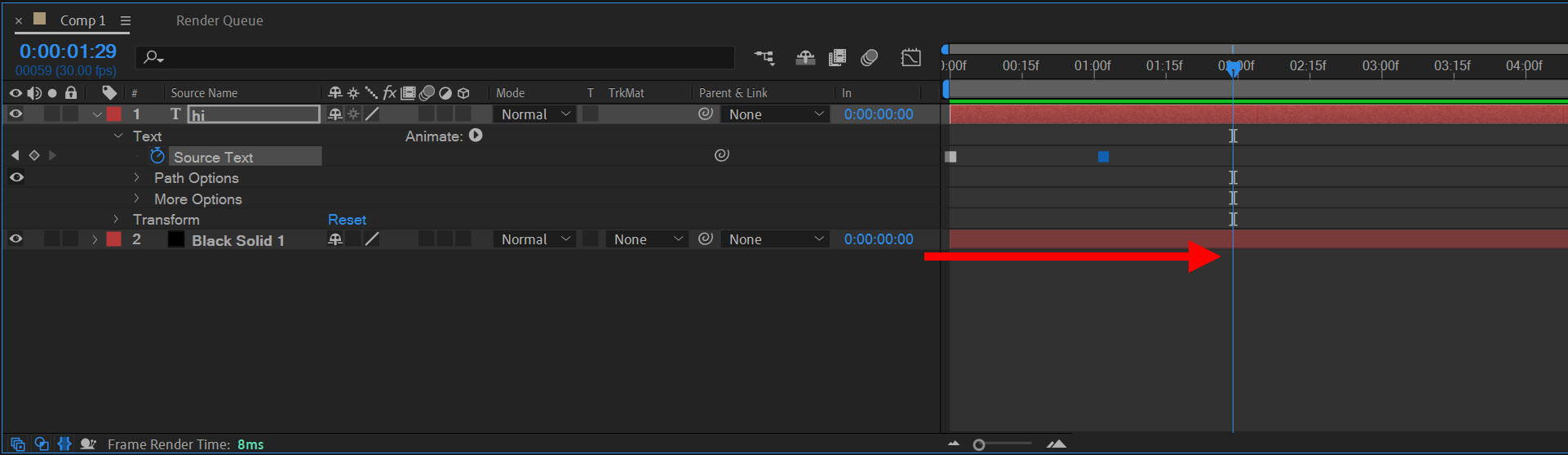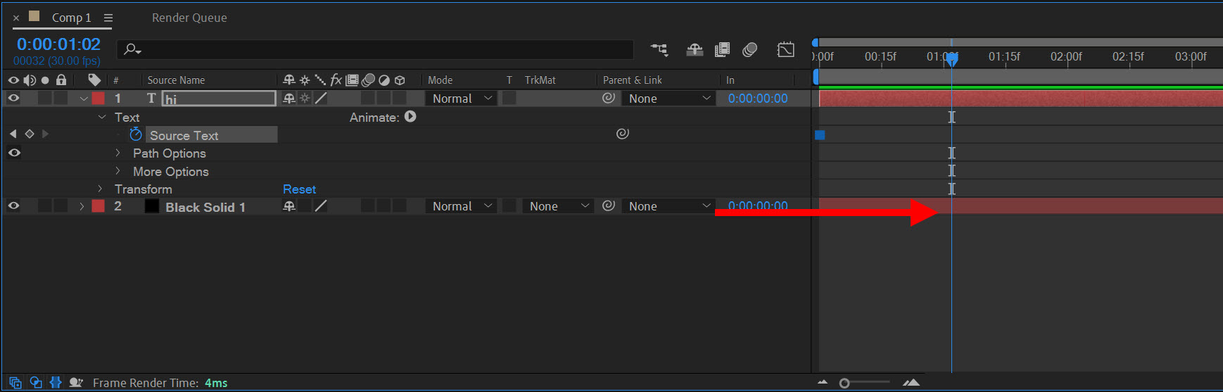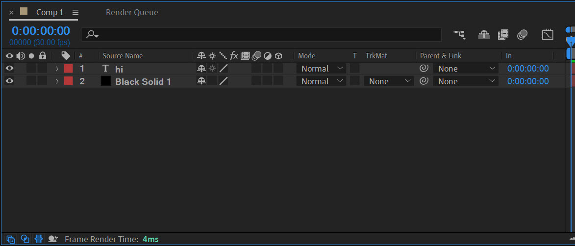 1)컴포지션에서 새로운 솔리드 레이어와 텍스트 레이어를 생성합니다.