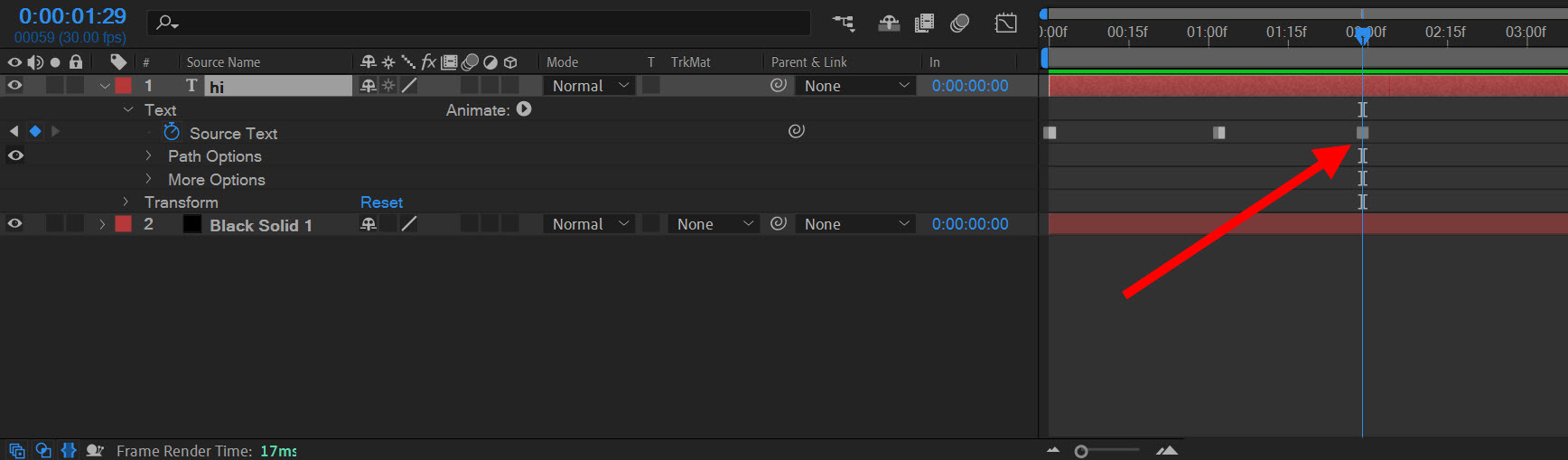 7)같은 방법으로 프레임에 새로운 텍스트의 키를 추가합니다.