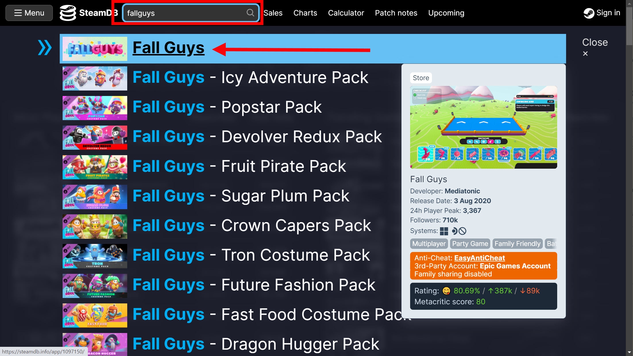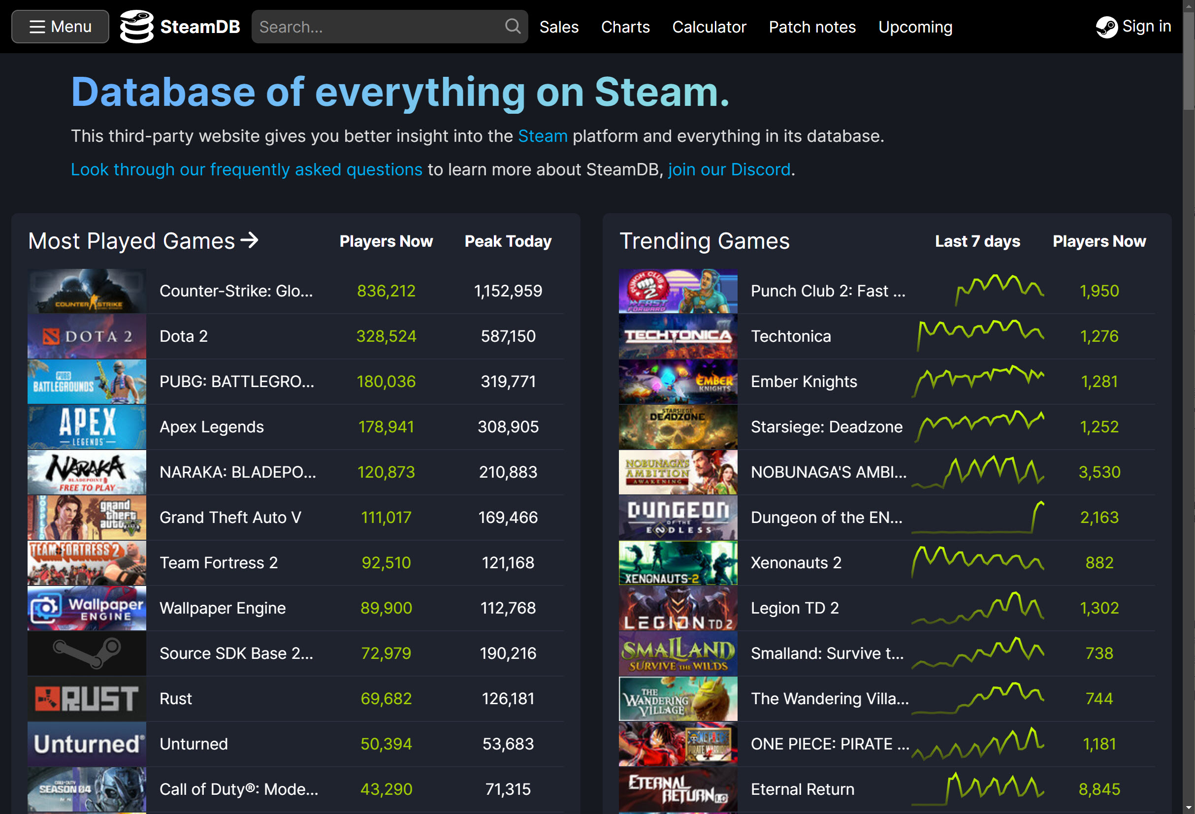 1)스팀 데이터베이스 웹사이트로 이동합니다.