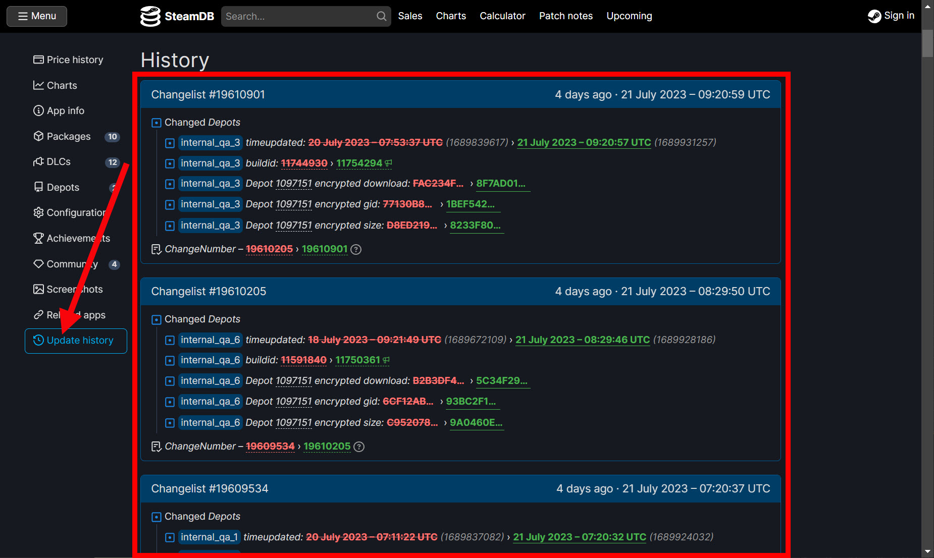 스팀 데이터베이스(steamDB)에서 게임 정보 확인하기(DLS, 업데이트 기록, 기타)