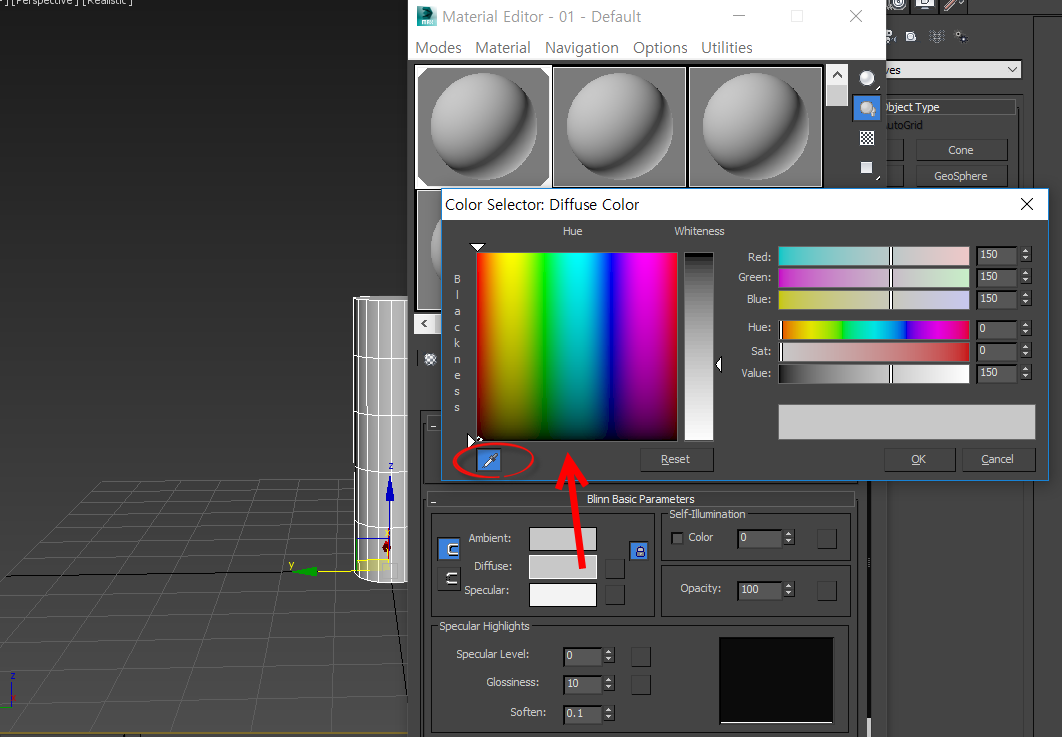 3D 맥스에서 프로그램 윈도우 외부 이미지 색상 선택하기