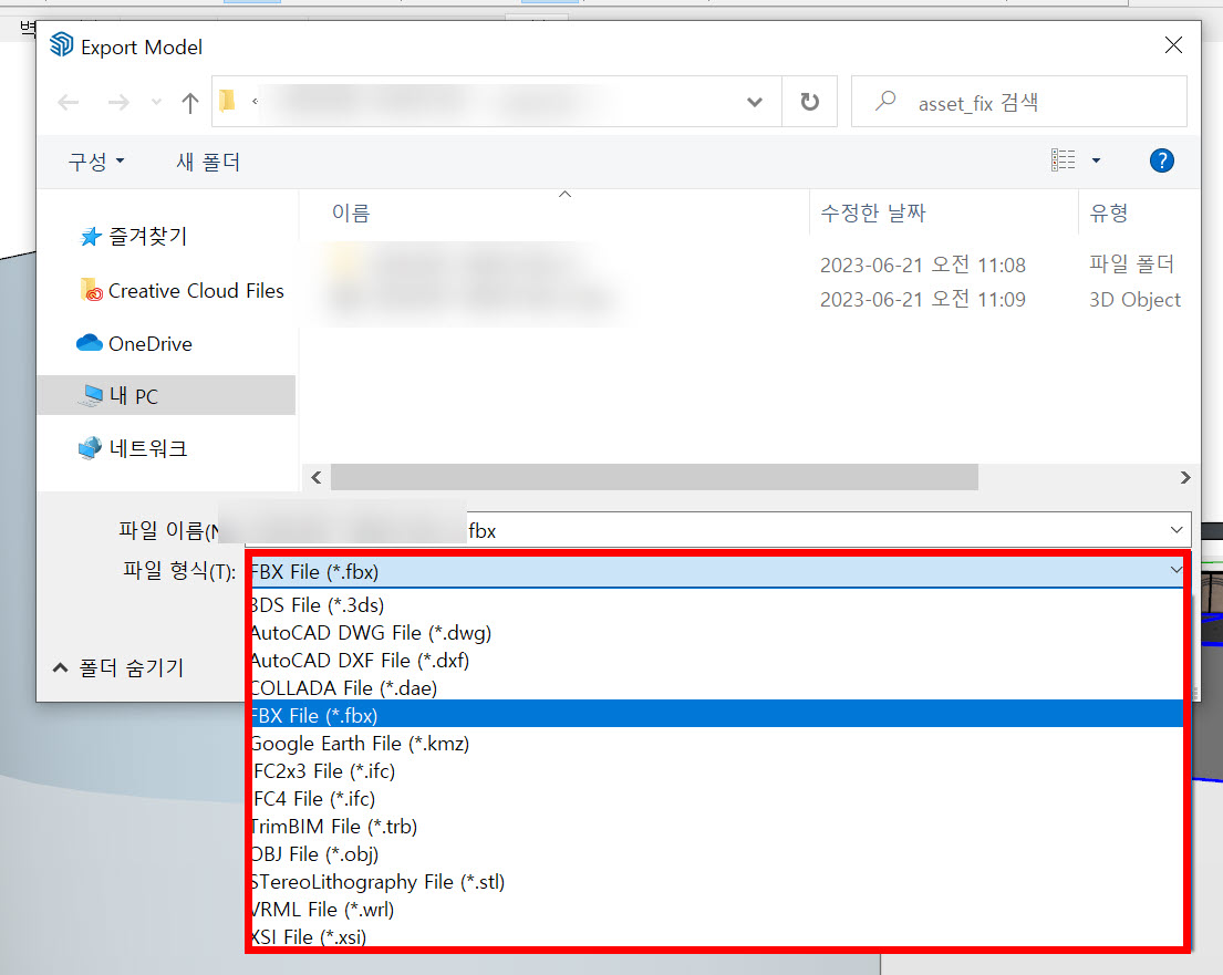 스케치업(SketchUp)에서 3D 모델 내보내기(FBX)