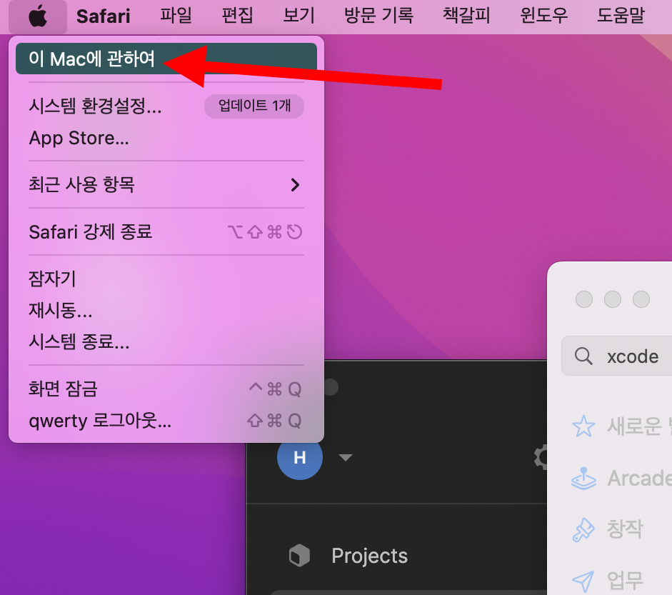 1)상단의 애플 메뉴에서 이 mac에 고나하여로 이동합니다.