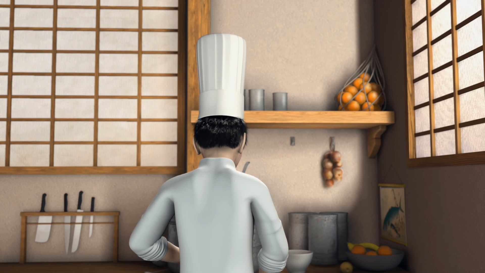 단편 애니메이션 추천 - Fugu, 복어와 요리사에게 일어난 황당한 사건을 코믹하게 표현한 작품