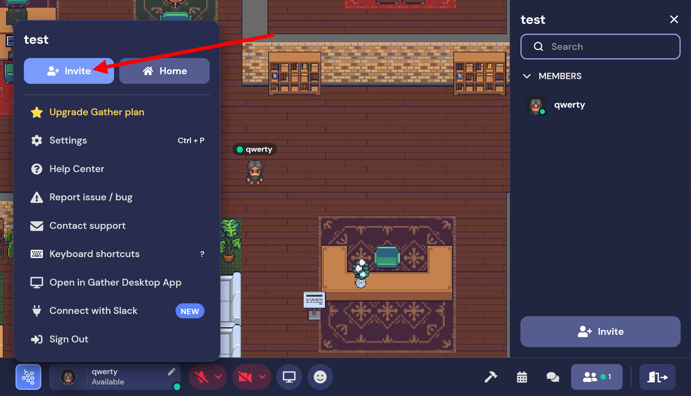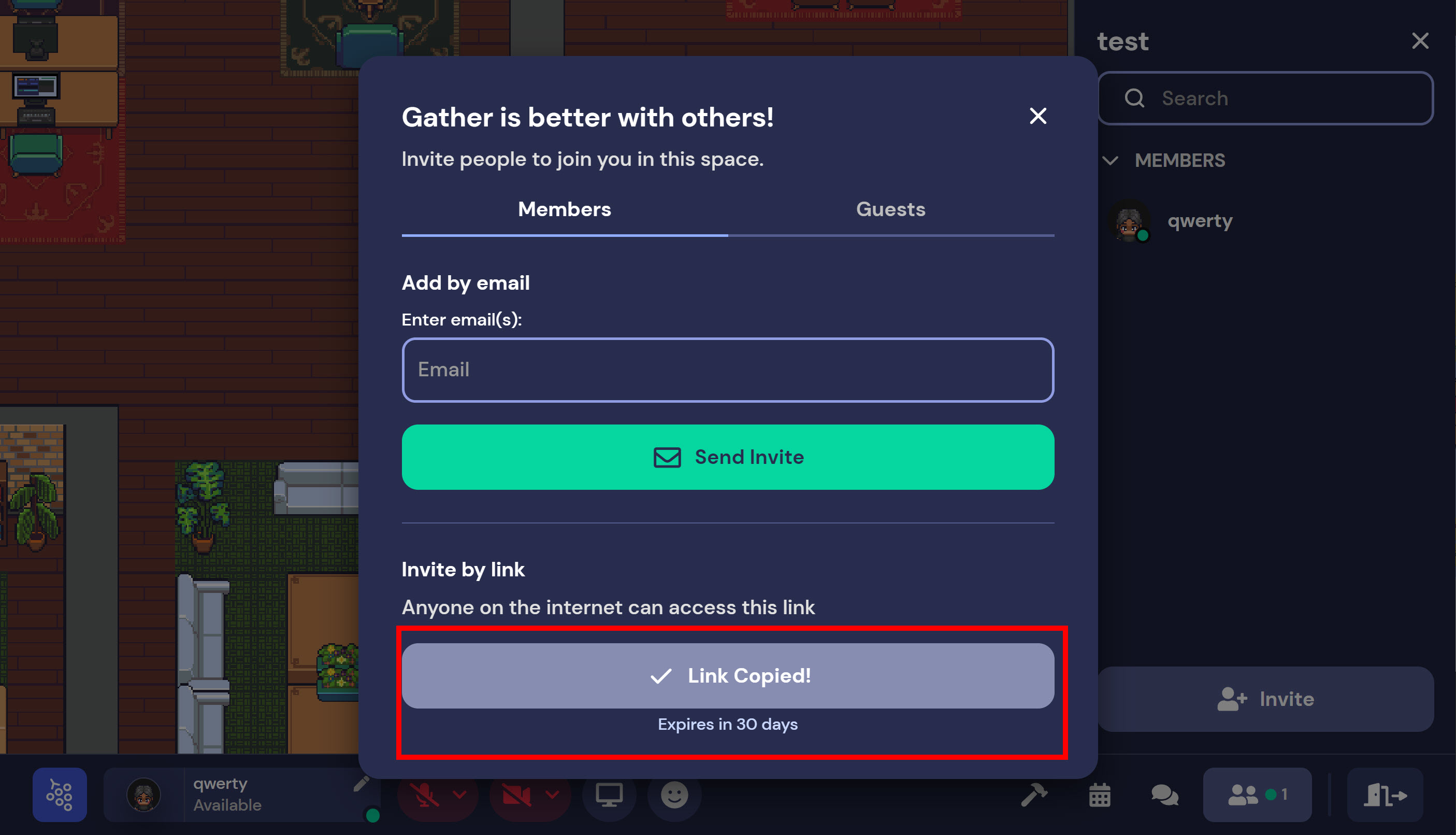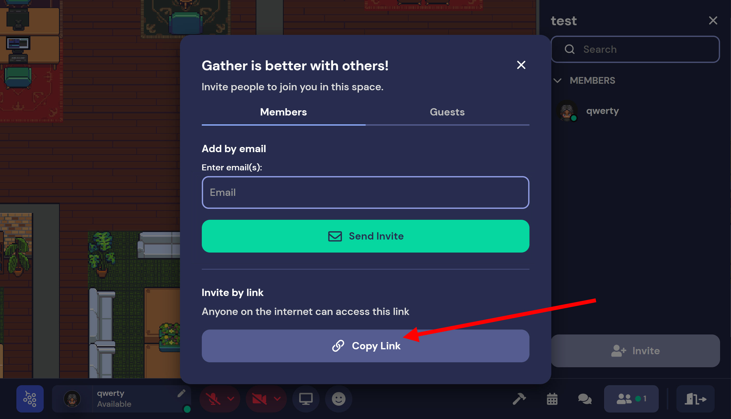 게더타운(gather.town)에서 공간에 사용자 초대하기(이메일 주소, 링크 복사)