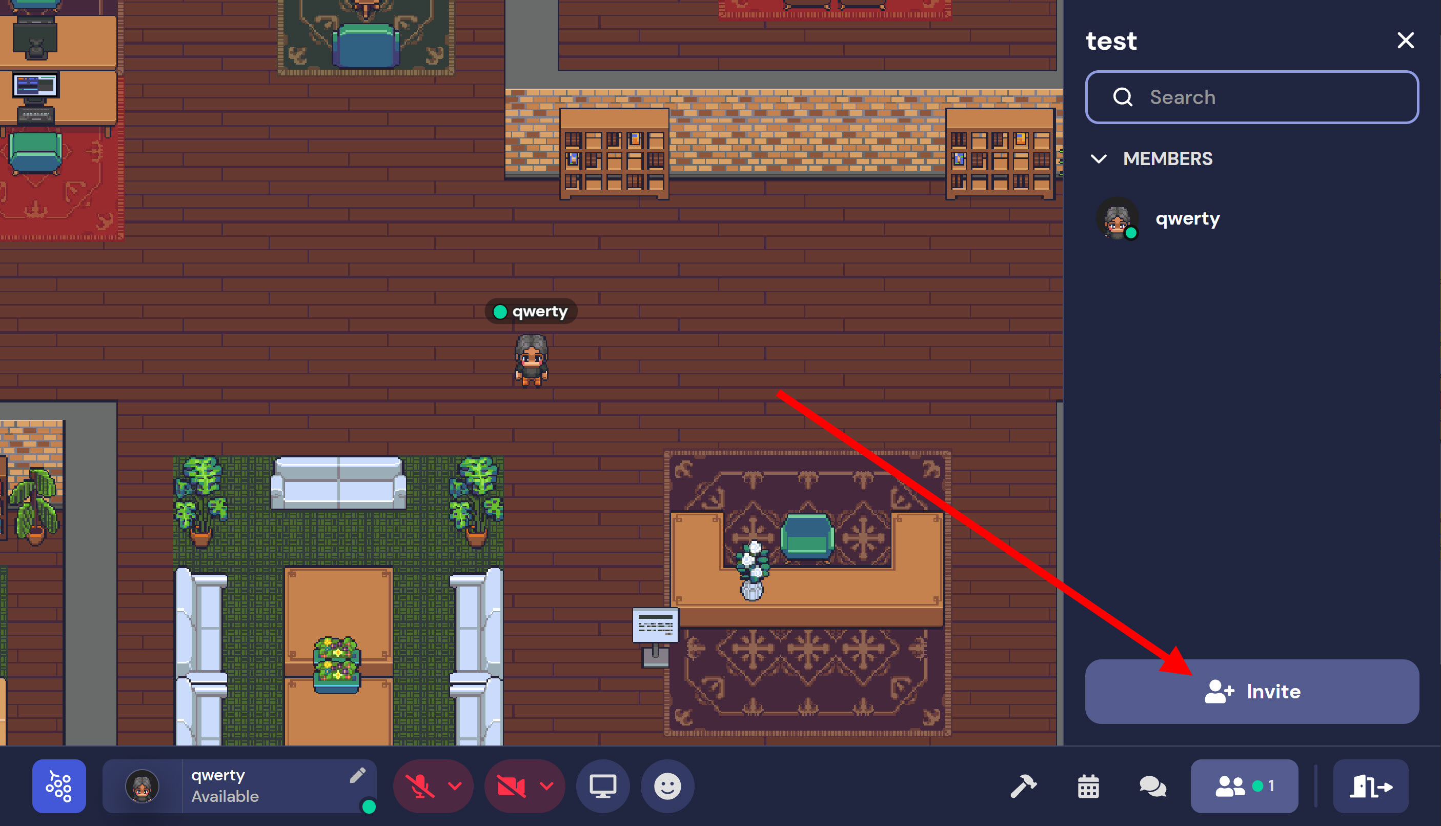 1)우측 방 참가자 목록(members)의 하단에서 invite를 클릭합니다.