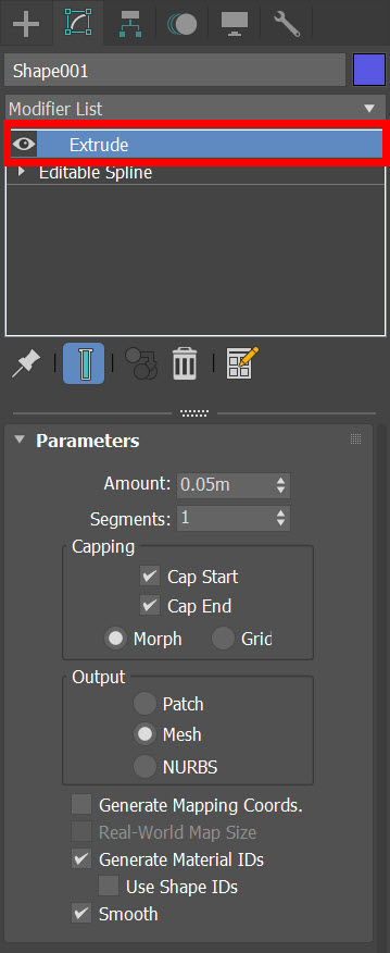 2)스플라인 오브젝트에 extrude 수정자를 추가합니다.