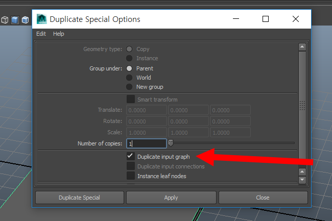 3D 마야(MAYA)에서 인풋 노드(inputs)를 포함하여 오브젝트 복사하는 방법