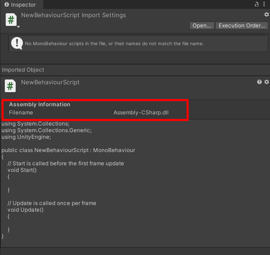 일반적으로 유니티는 거의 모든 게임 스크립트를 미리 정의된 어셈블리인 Assembly-CSharp.dll로 컴파일합니다.