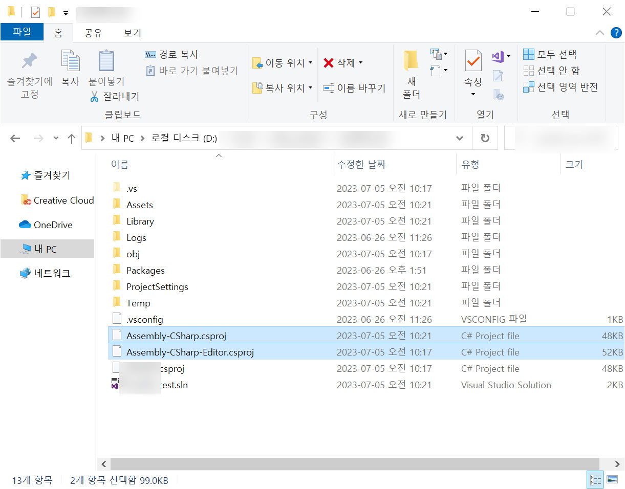 4)어셈블리(Assembly-CSharp)와 동일한 이름의 프로젝트를 확인할수있으며 유니티 프로젝트 폴더에 해당 프로젝트 파일이 존재하는것을 확인할수있습니다.