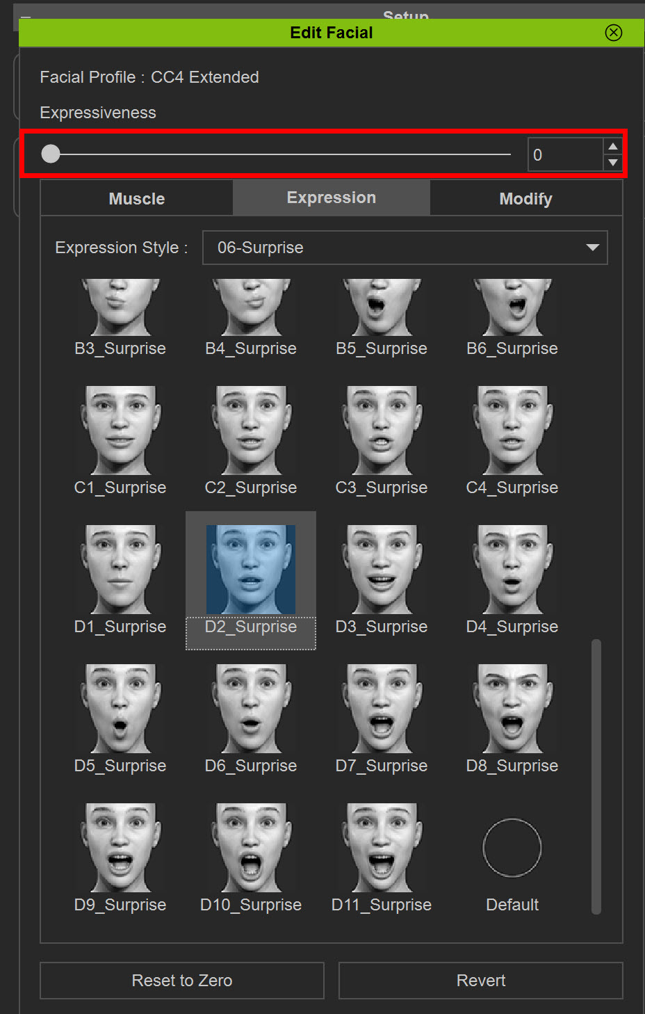 7)선택한 얼굴 표정의 expressiveness의 값을 0으로 설정합니다.
