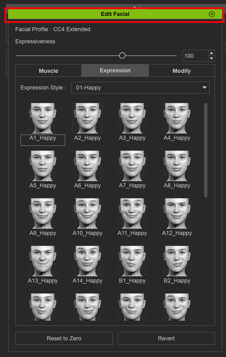 4)edit facial에서 현재 캐릭터의 얼굴 프로파일(CC4 Extended)을 확인할수있습니다.