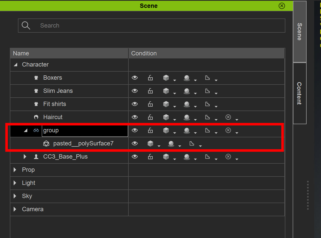 3)씬에 3D 의상 오브젝트가 악세사리(accessory)로써 추가된것을 확인할수있습니다.