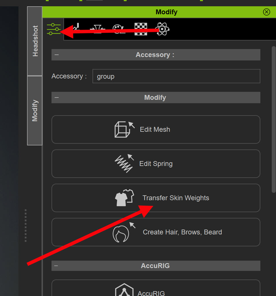 14)modify 패널의 Attribute 탭에서 transfer skin weights를 선택합니다.