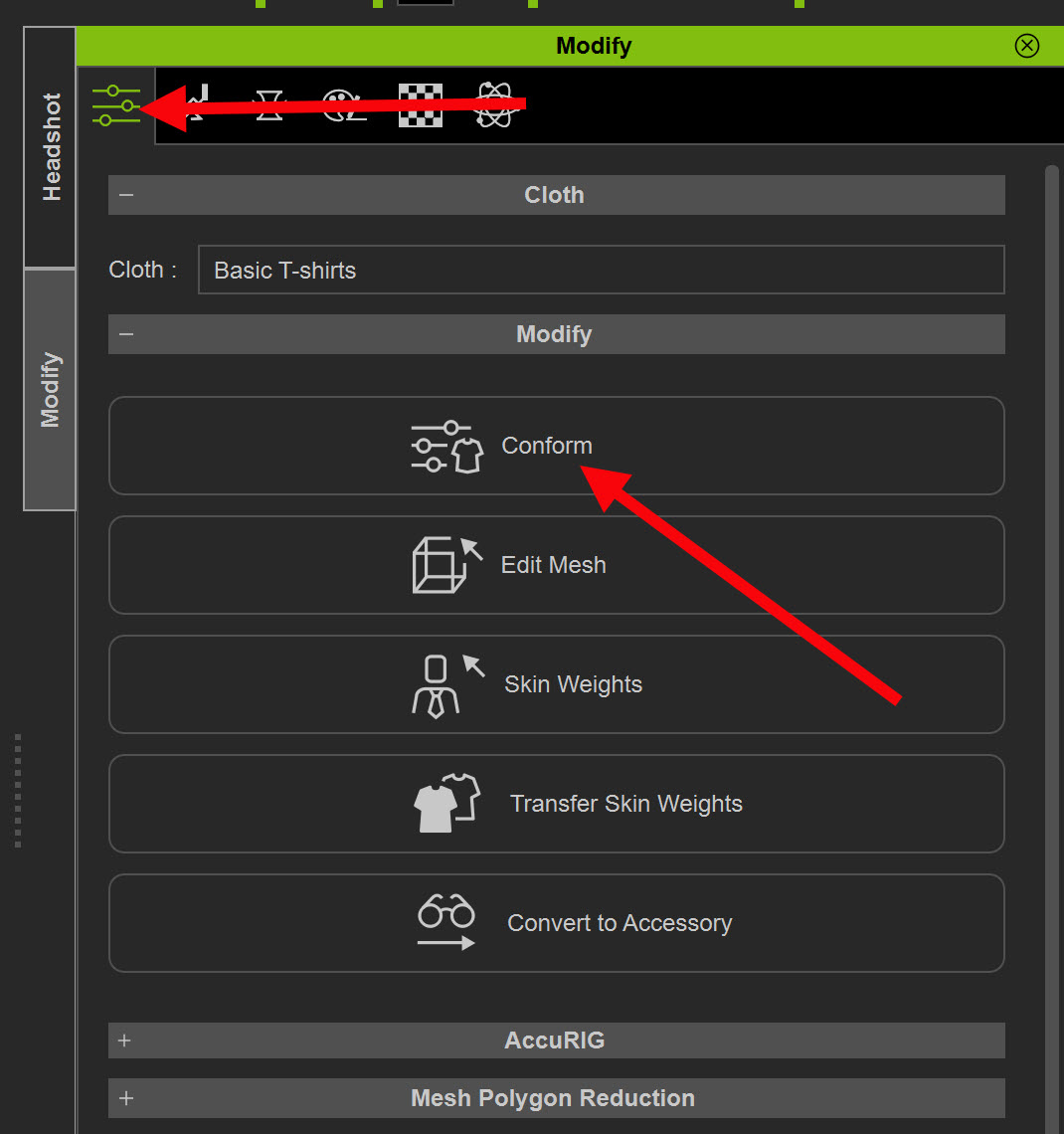 캐릭터 크리에이터(Character Creator) - conform 기능을 사용하여 리깅한 의상 수정하기