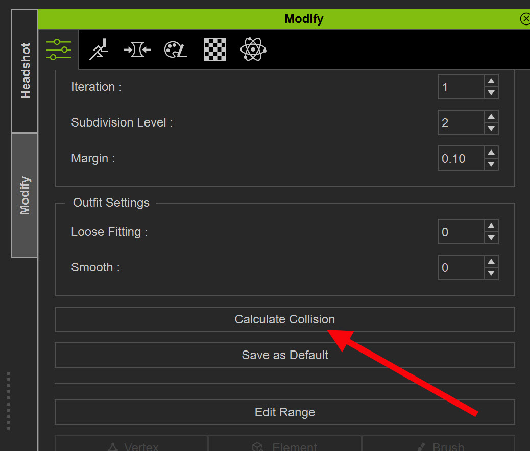 5)Calculate Collision를 반복적으로 클릭하여 관통 문제를 해결합니다.