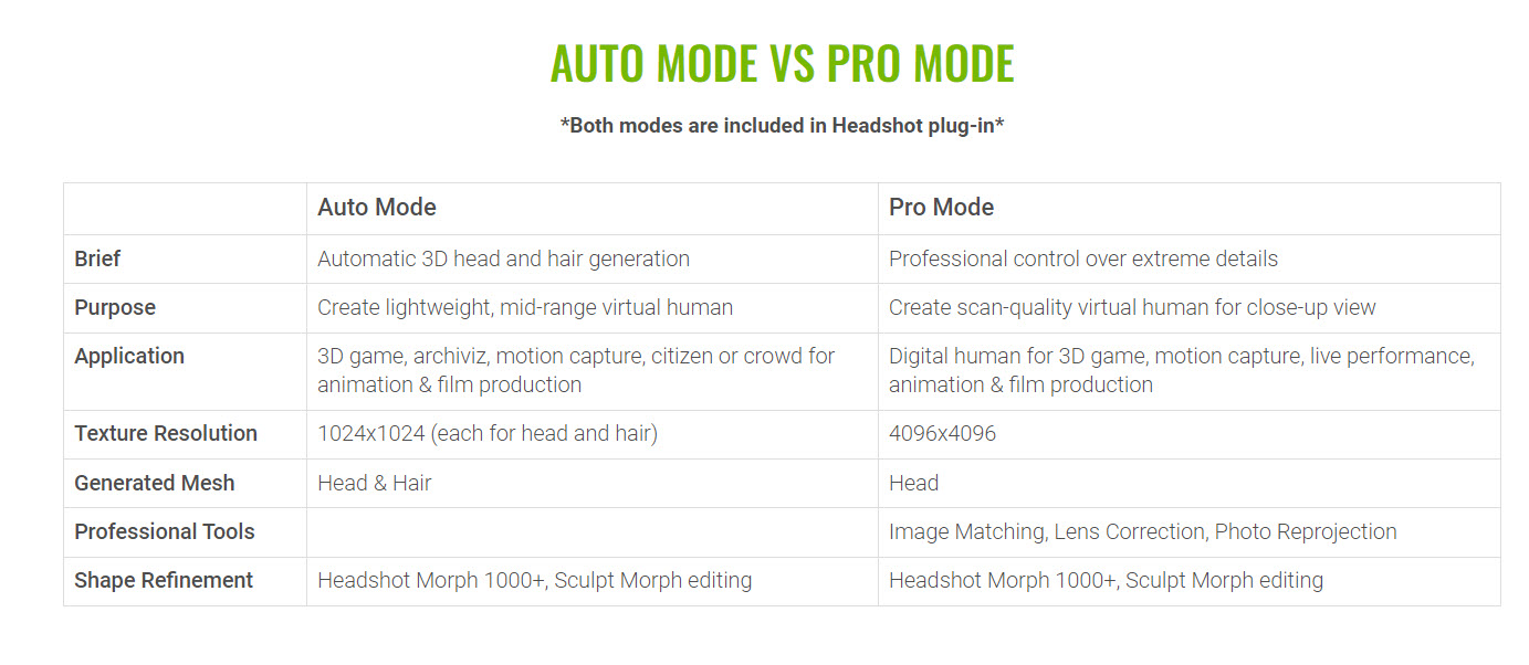 캐릭터 크리에이터(Character Creator) - 헤드샷(headshot) 플러그인 3D 얼굴생성 유형(AUTO, PRO) 차이