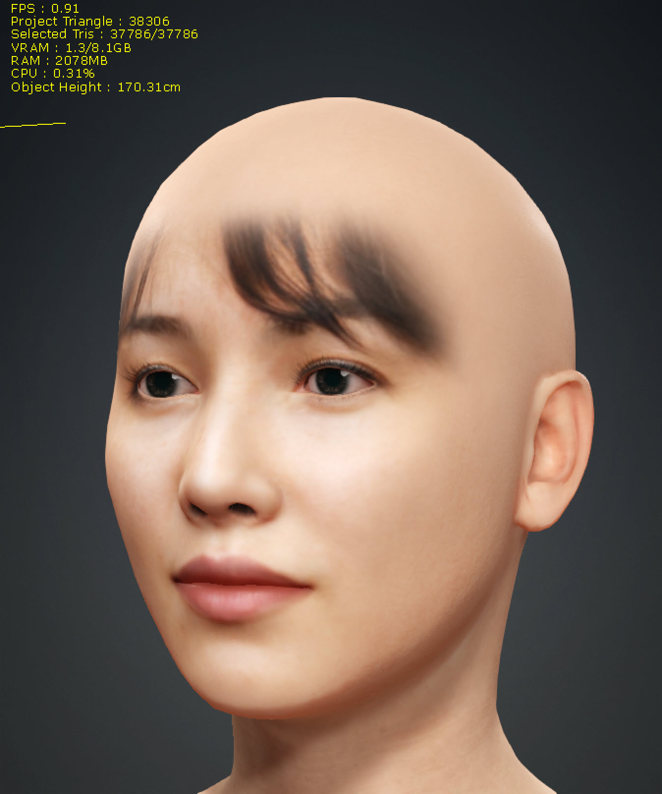 2)자동 모드는 최대 1k 텍스처를 사용하며 생성한 3D 얼굴에는 헤어(hair) 메시가 포함됩니다.