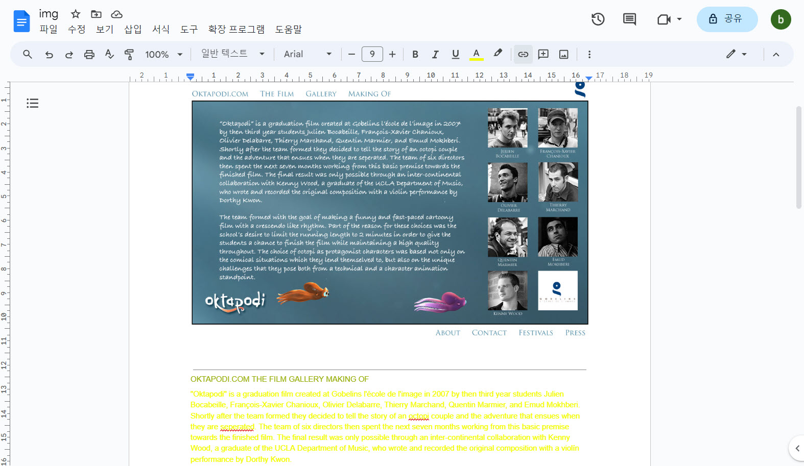 4)새로운 google 문서 웹페이지에서 해당 이미지와 이미지에 존재하는 텍스트를 확인할수있습니다.