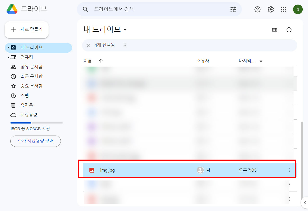2)구글에 사용자 로그인하고 구글 드라이브에서 이미지 파일을 업로드합니다.
